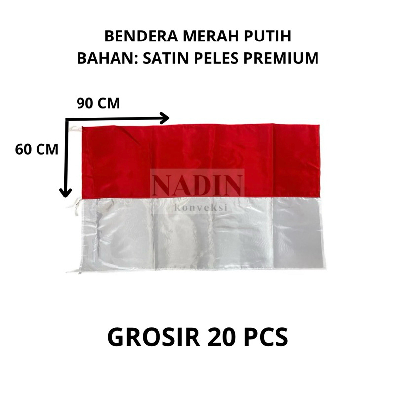 GROSIR (ISI 20 PCS) Bendera Merah Putih Ukuran 60 x 90 CM - Bendera Rumah Merah Putih Satin Peles - BENDERA INDONESIA