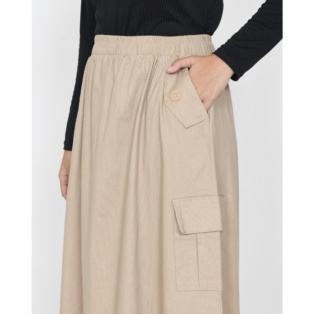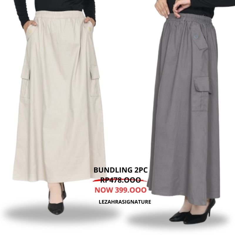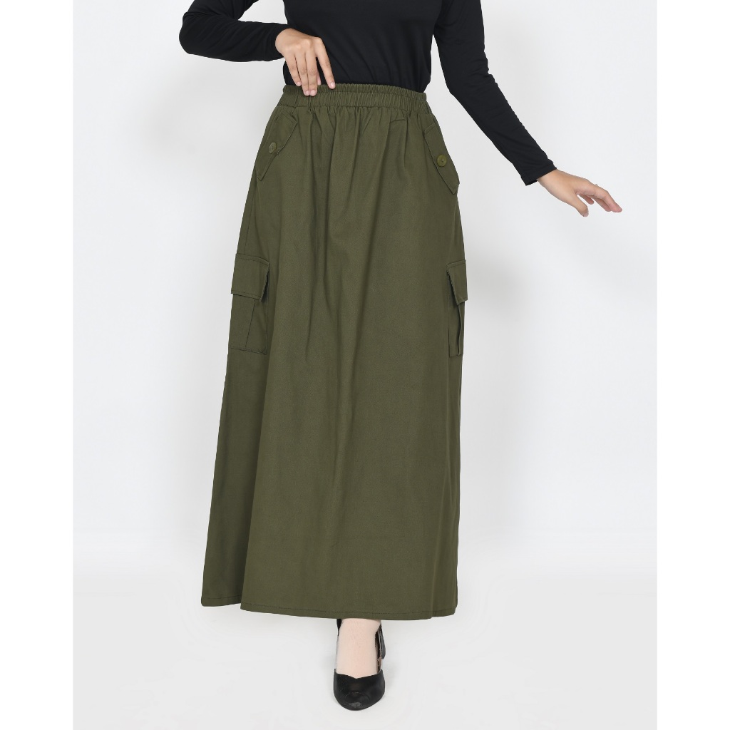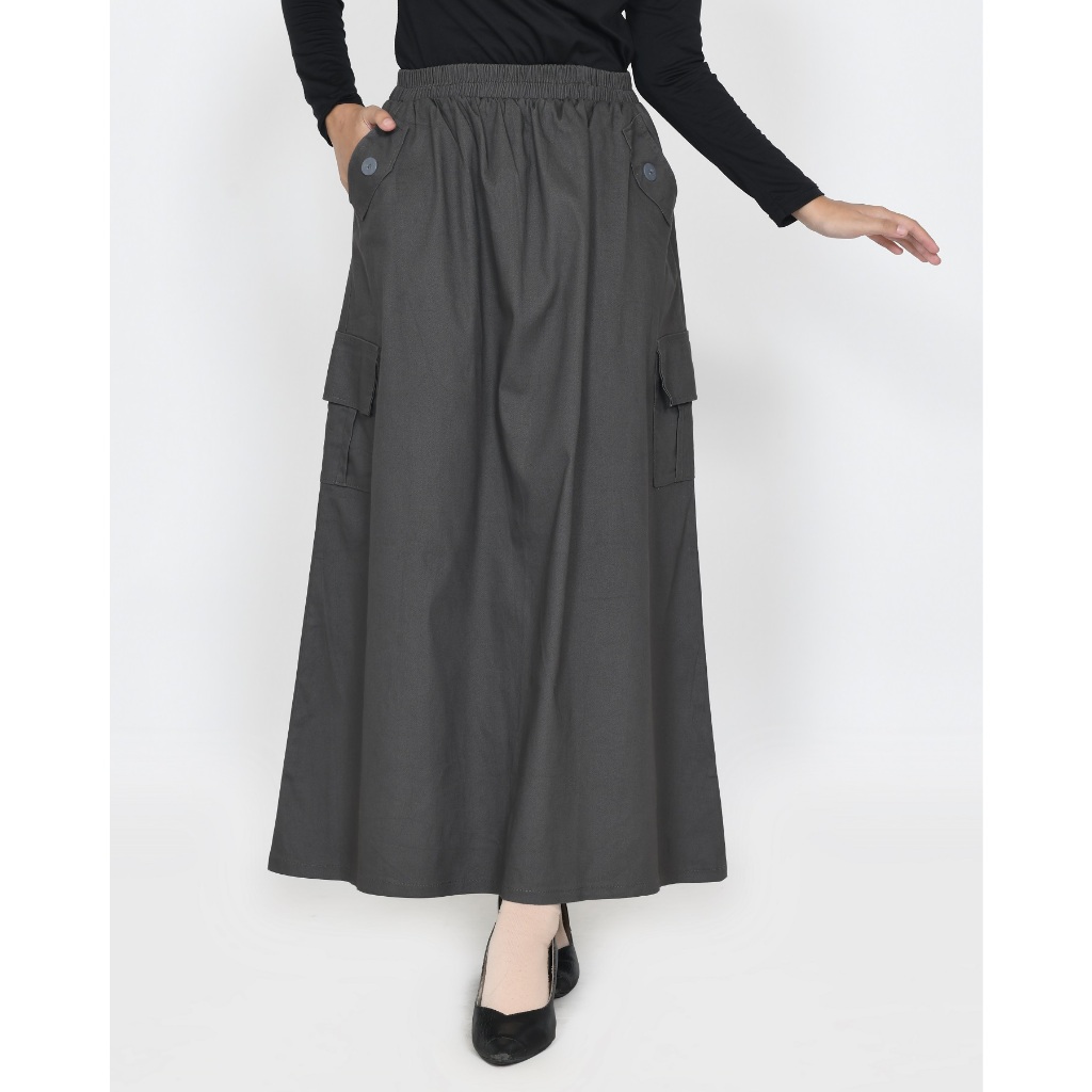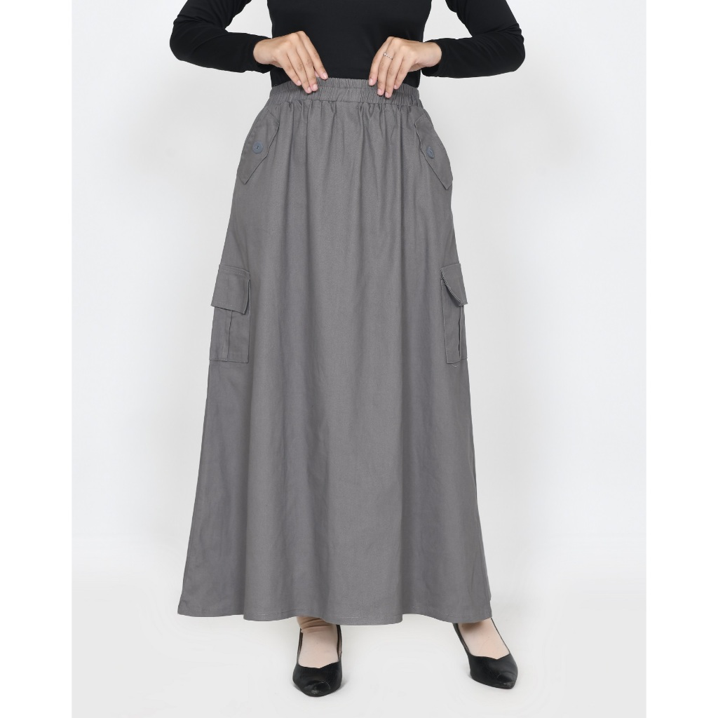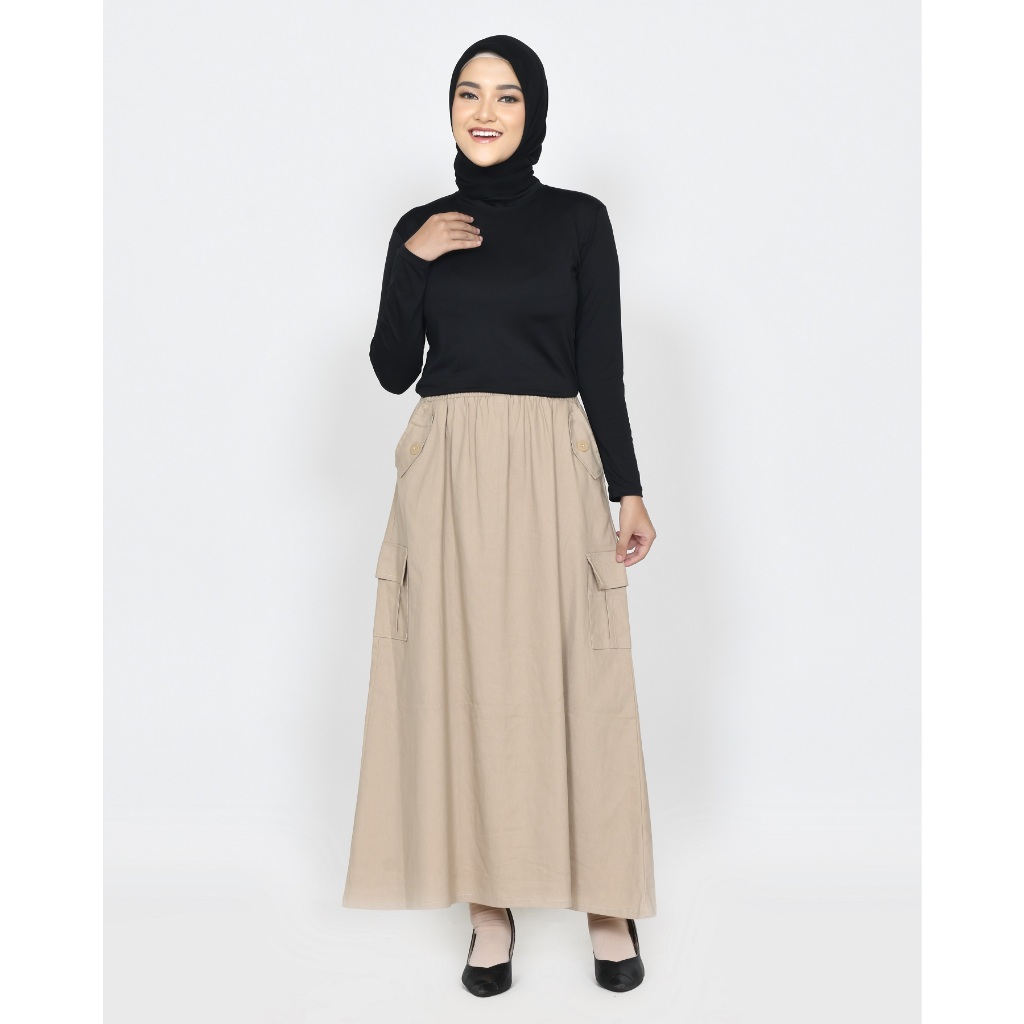 ROK KARGO TWILL KATUN PANJANG 93 CM MUSLIM WANITA PINGGANG KARET KARGO LEZAHRASIGNATURE LONGSKIRT CARGO FIA TWILL COTTON STRECH FIT XXL