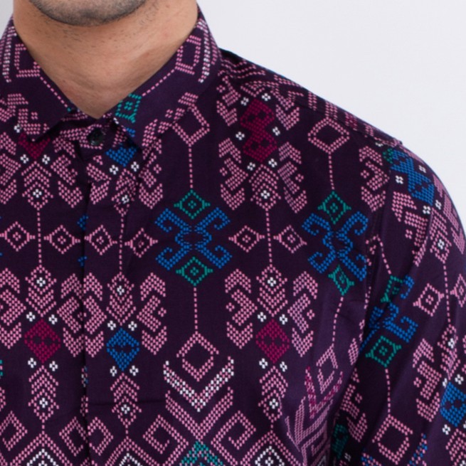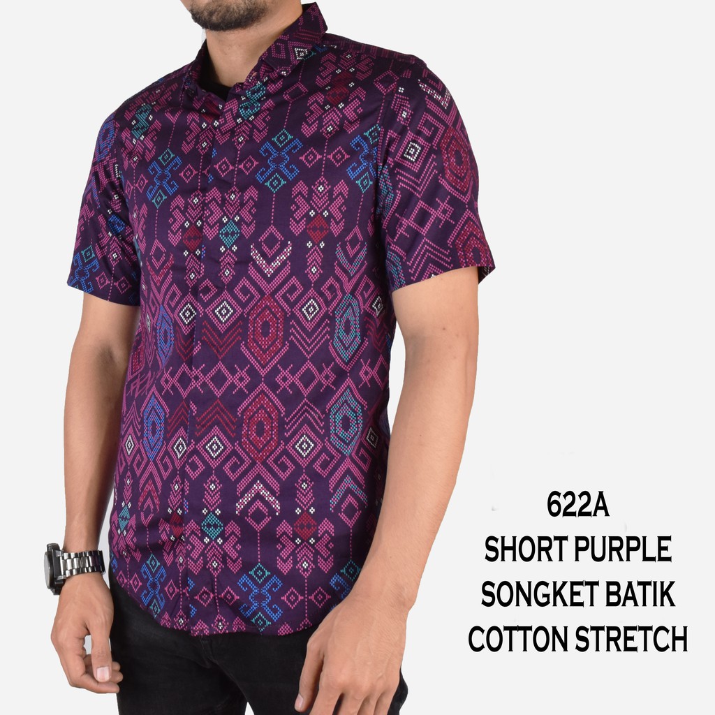 622 & 622A Atasan Pria Baju Batik Lengan Panjang & Dan Pendek Motif Songket Ungu Slimfit Grosir