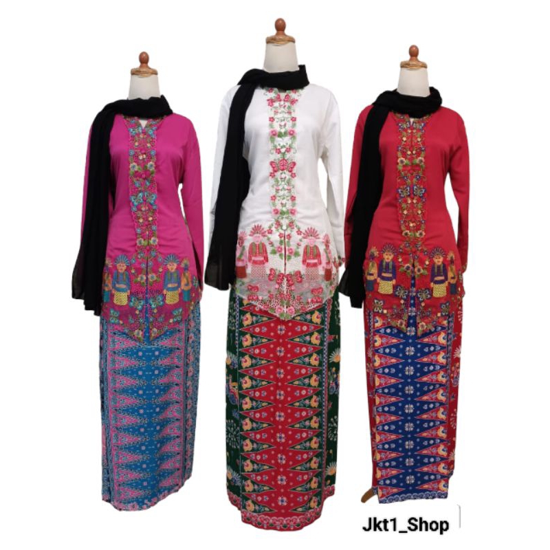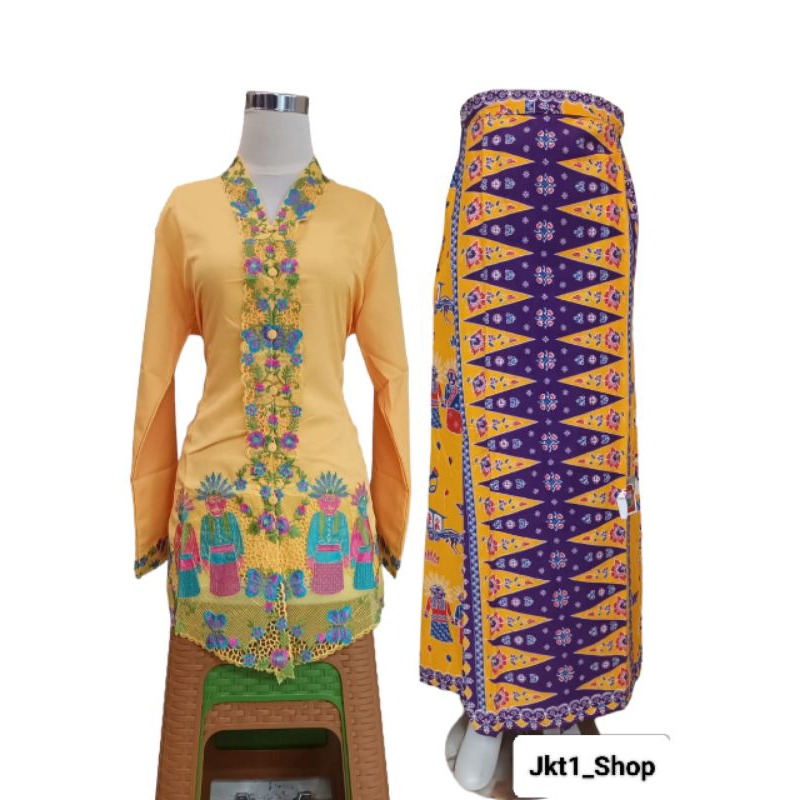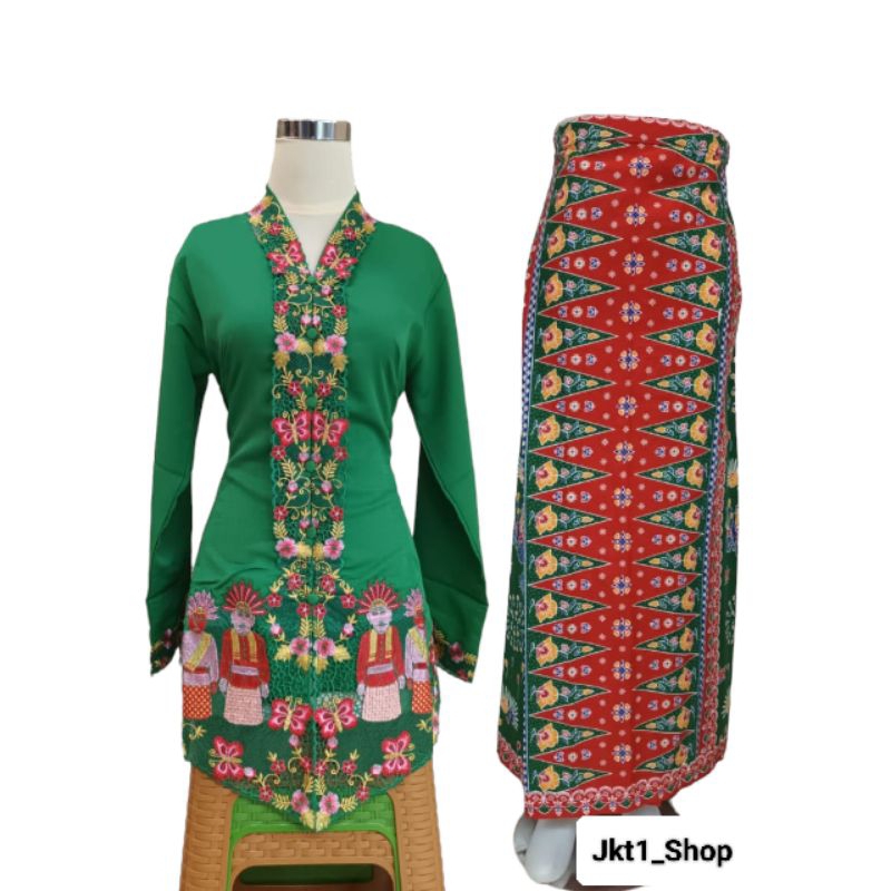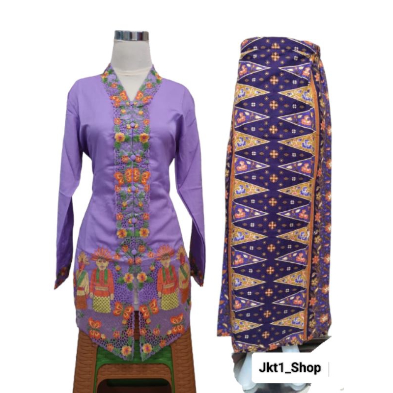 Setelan kebaya Encim Betawi Motif Ondel-Ondel Terlaris/Kebaya Encim adat/Kebaya Betawi eren