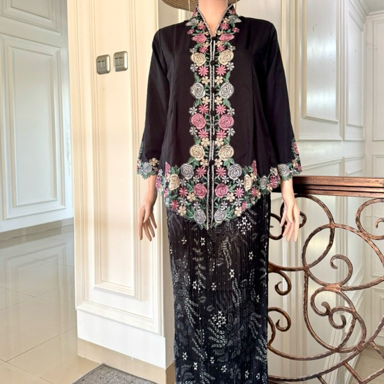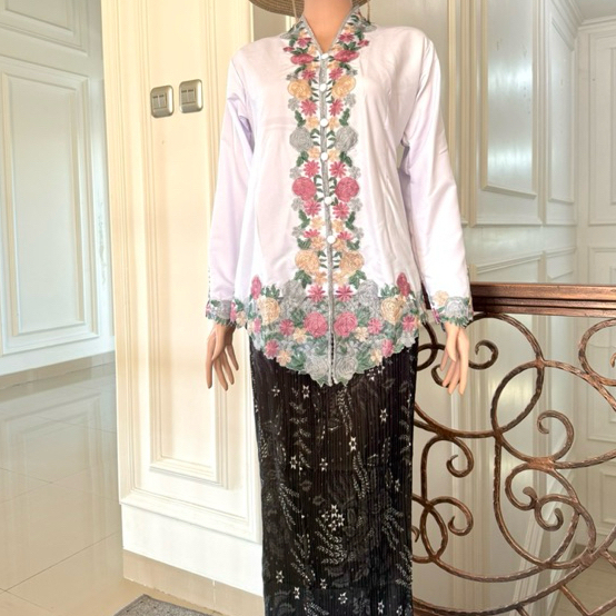 ONE SET KEBAYA ENCIM BORDIR MOTIF BUNGA TANGAN PANJANG KATUN MIKRO PREMIUM