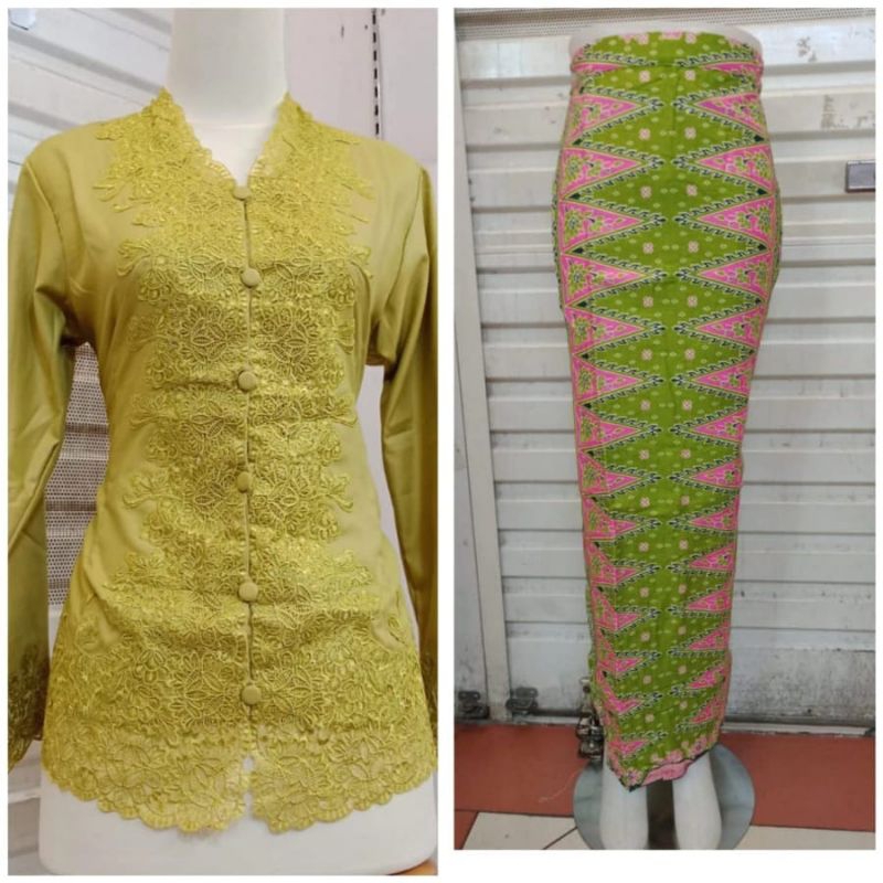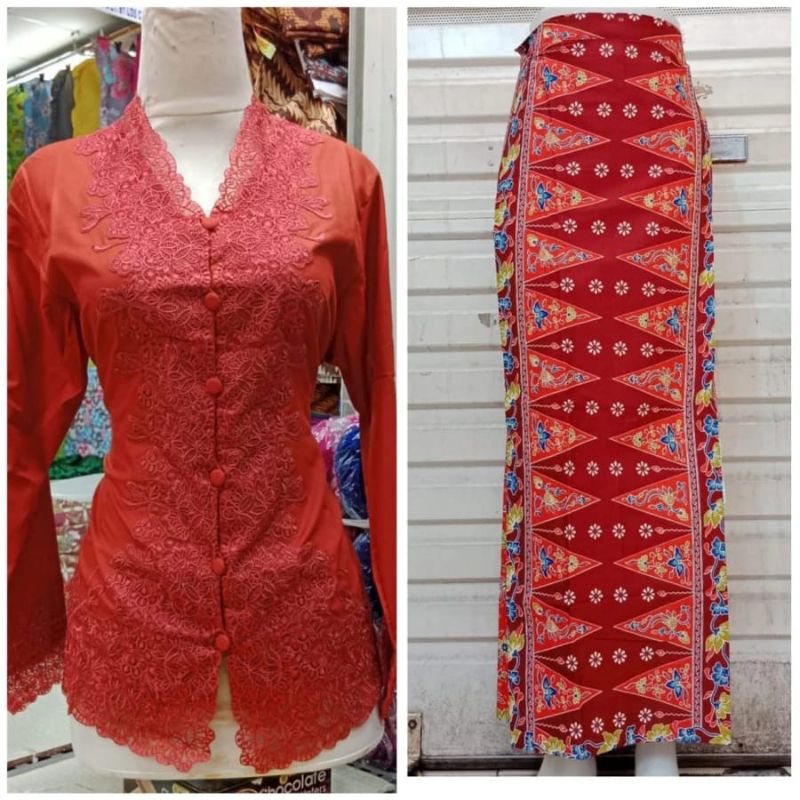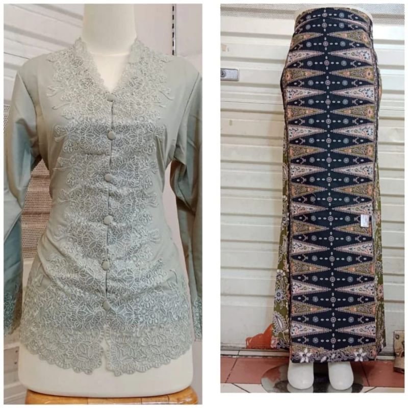 Set Kebaya Encim Bordir Flat /Kebaya encim bahan katun /KebayaTradisional ern