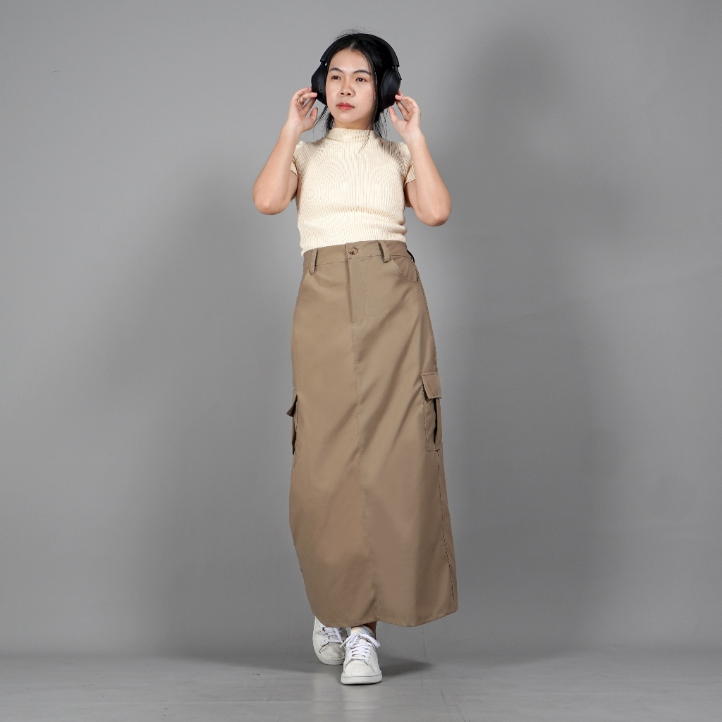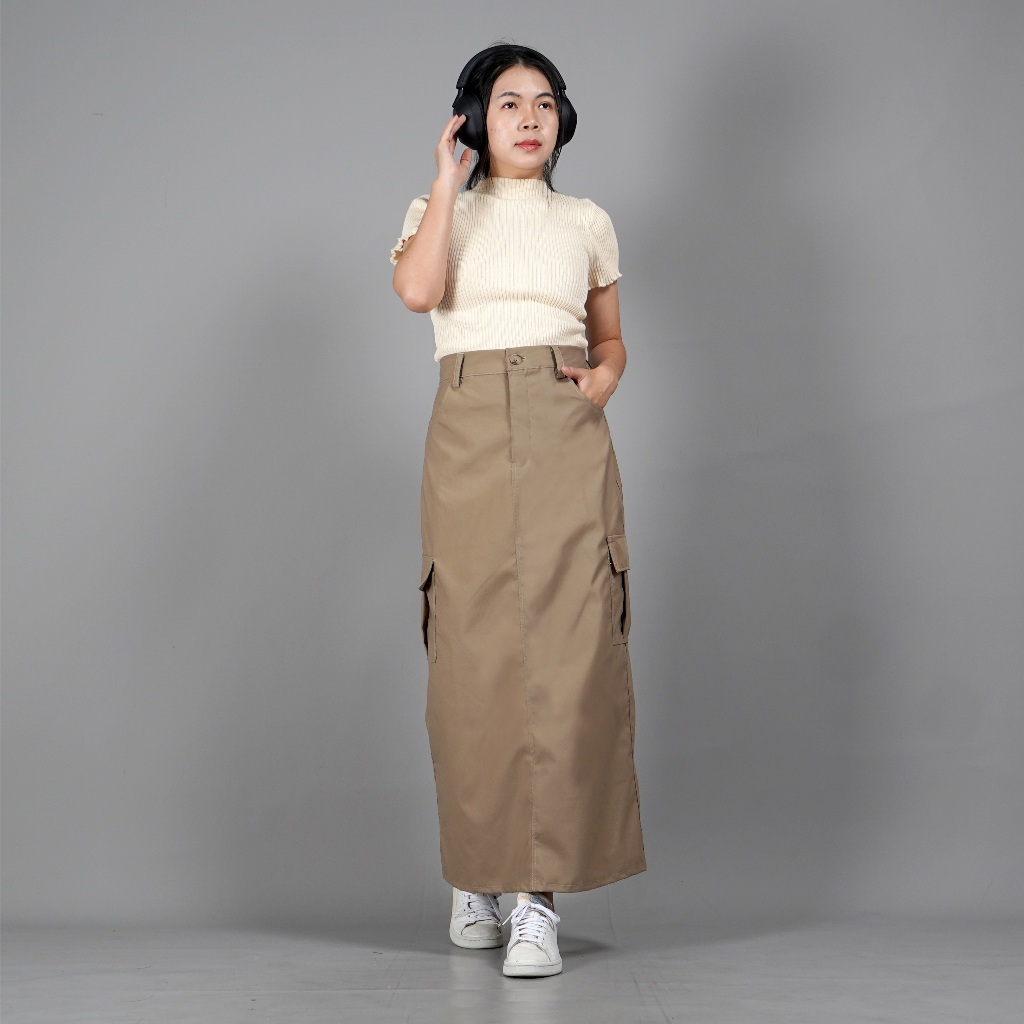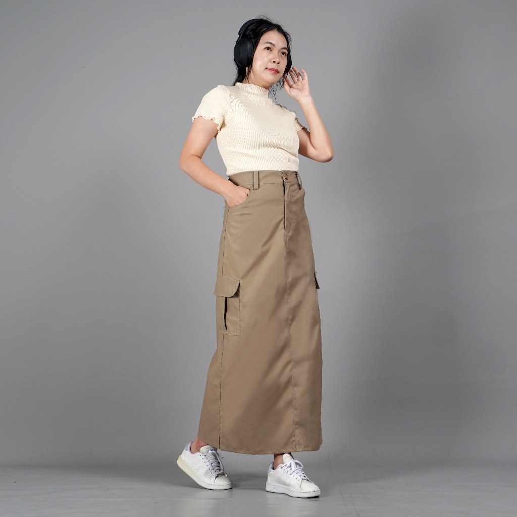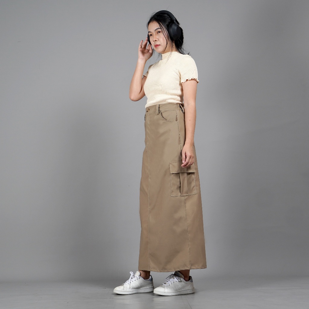OKECHUKU MAGGIE ROK CARGO BAWAHAN WANITA KEKINIAN MODEL TERBARU - KHAKI