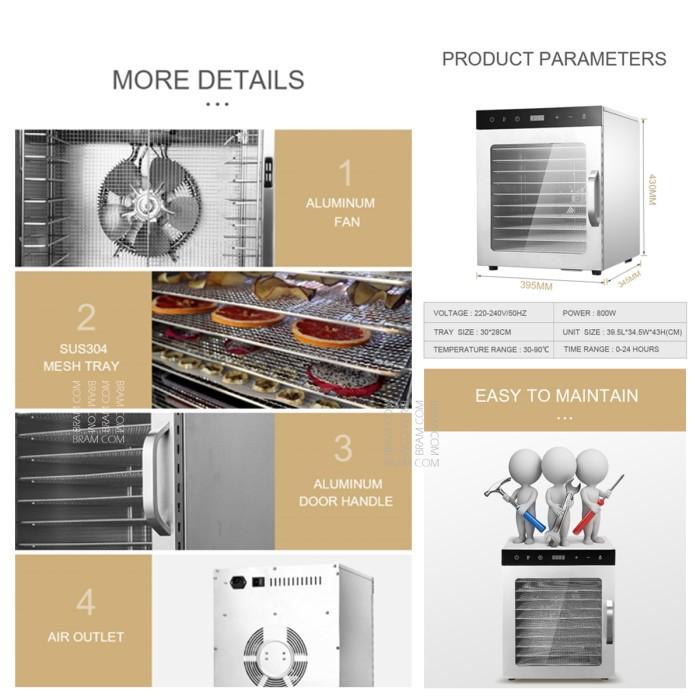 PROMO 8.8 PAPALOLO DRYING STAINLESS STEEL FOOD DEHYDRATOR MACHINE 10 TRAYS (OVEN) SS10H