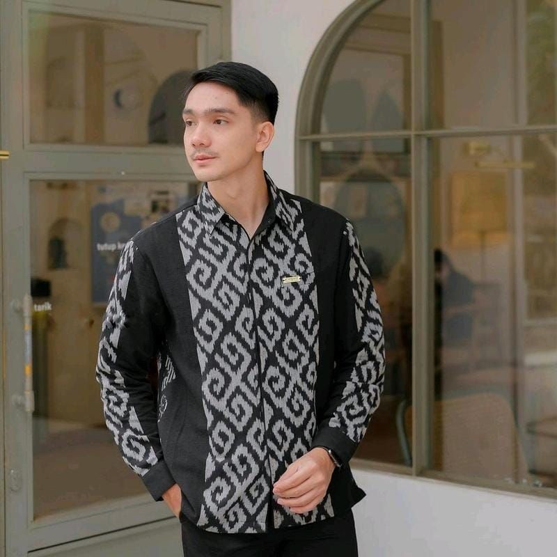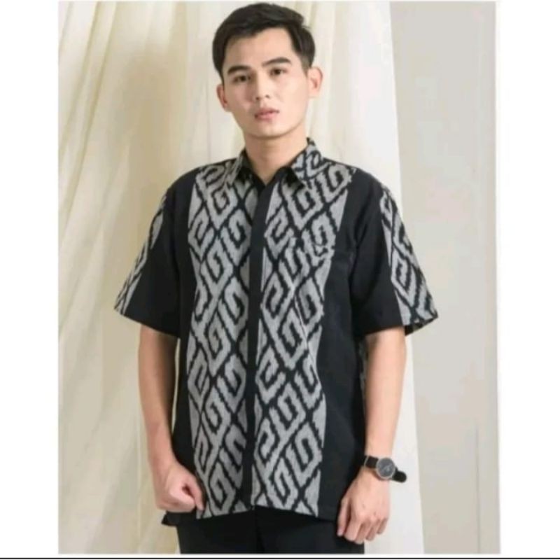 Baju Batik Tenun Couple Kekinian Kemeja Pria Motif Toraja Songket Premium Hitam