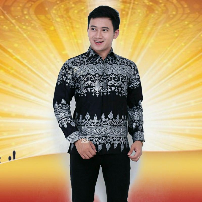 Baju Batik Pria Lengan Panjang Modern Motif Songket Terbaru Bahan Katun | Kemeja Pria Lengan Panjang