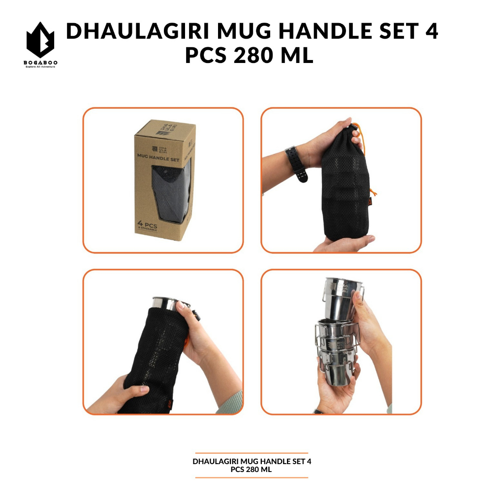 BISA Dhaulagiri mug handle 4 set 280 mal - Coffe Cup Set Stainless Double Wall - gelas kopi 4 susun - Cangkir Kopi Cam