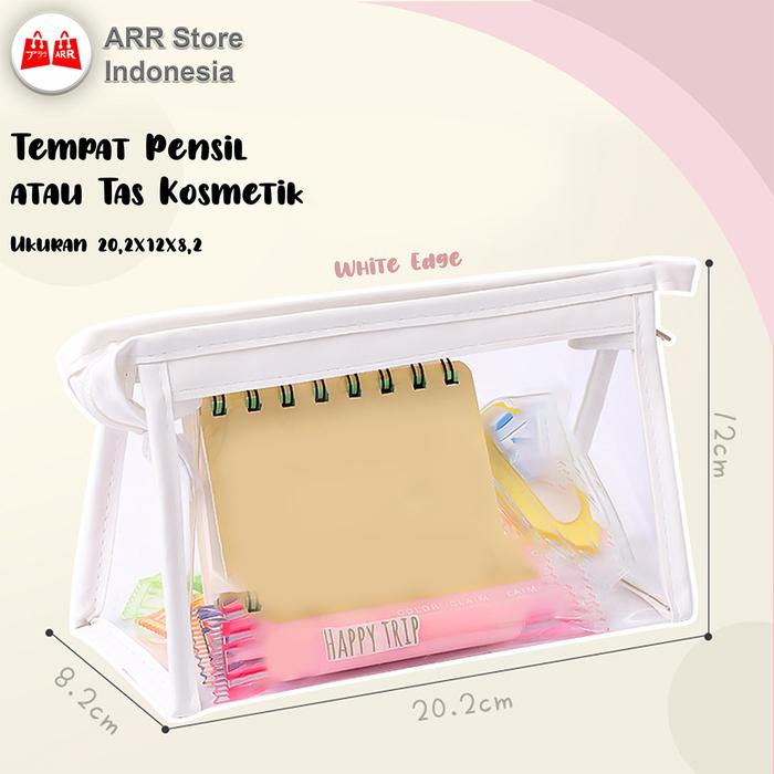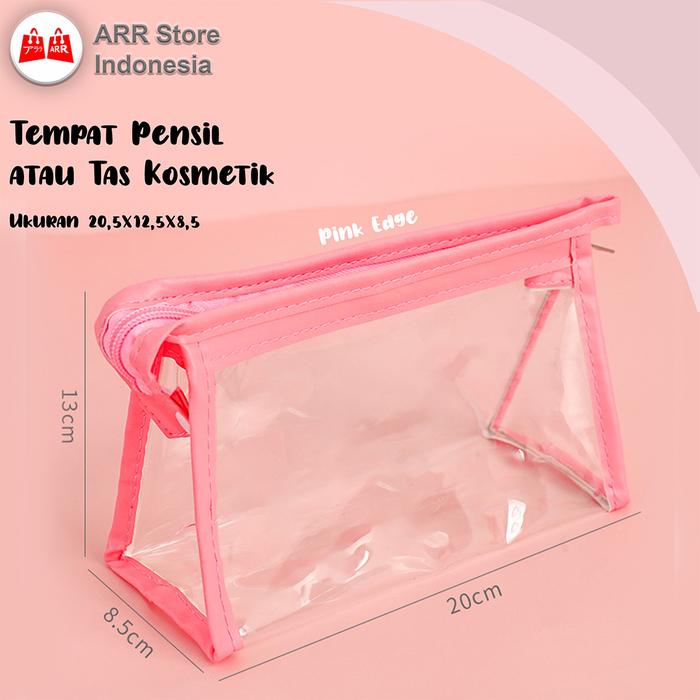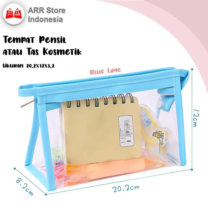 PROMO 8.8 TEMPAT PENSIL POUCH KOSMETIK RITSLETING TRANSPARAN BLUE EDGE
