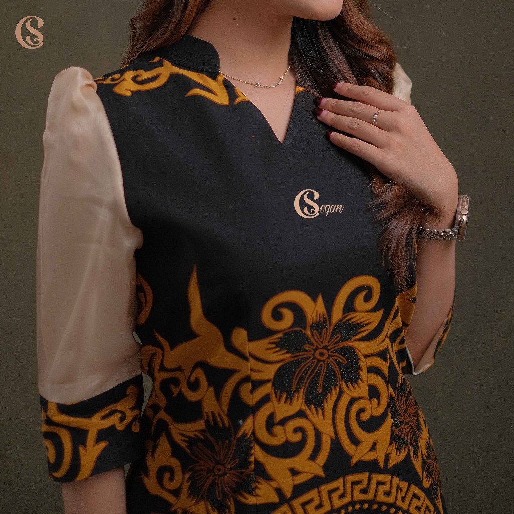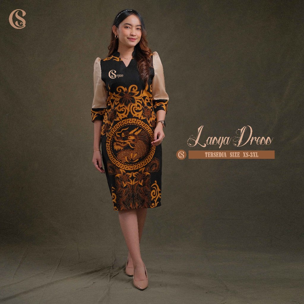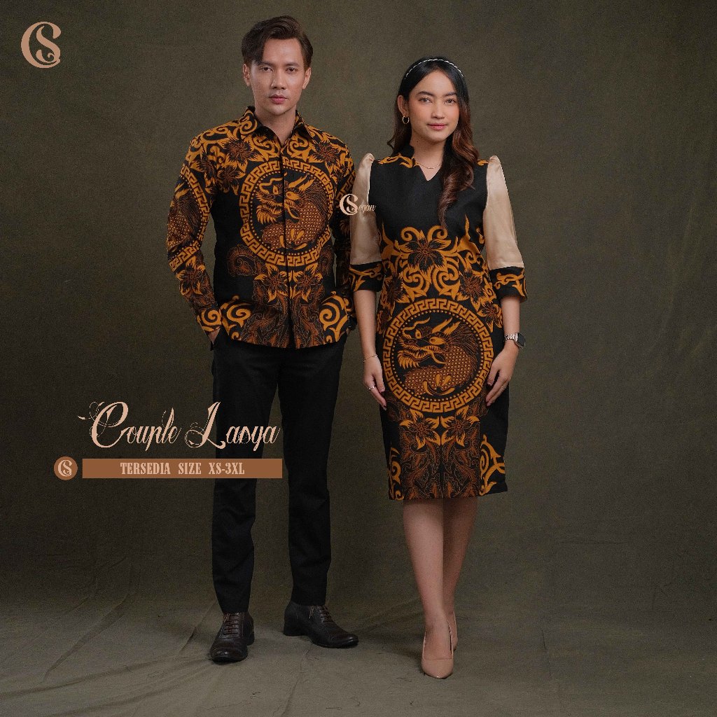 BATIK GIRI SOGAN - MOTIF LASYA - COUPLE BATIK PREMIUM DRESS FULL TRIKOT DAN KEMEJA FULL FURING