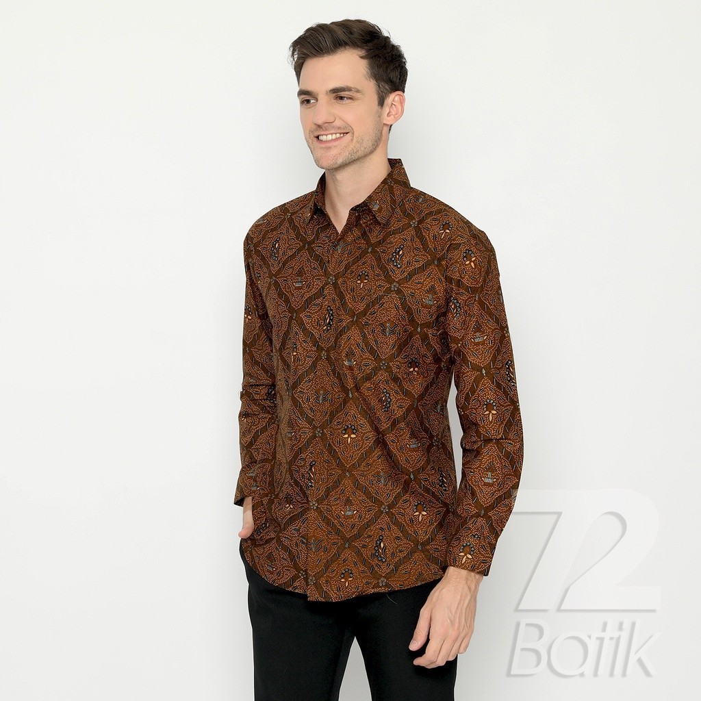 Batik Couple Modern Motif Sidomukti 72 Batik Kemeja Lengan Panjang Slimfit Rok Lilit Instan Premium Warna Coklat 725568