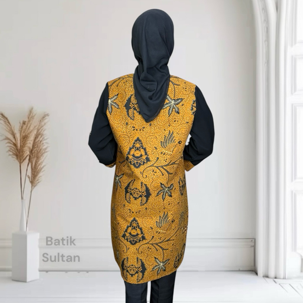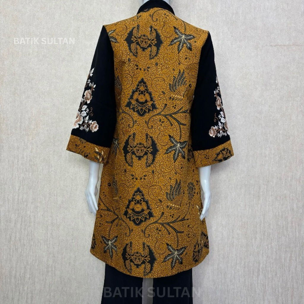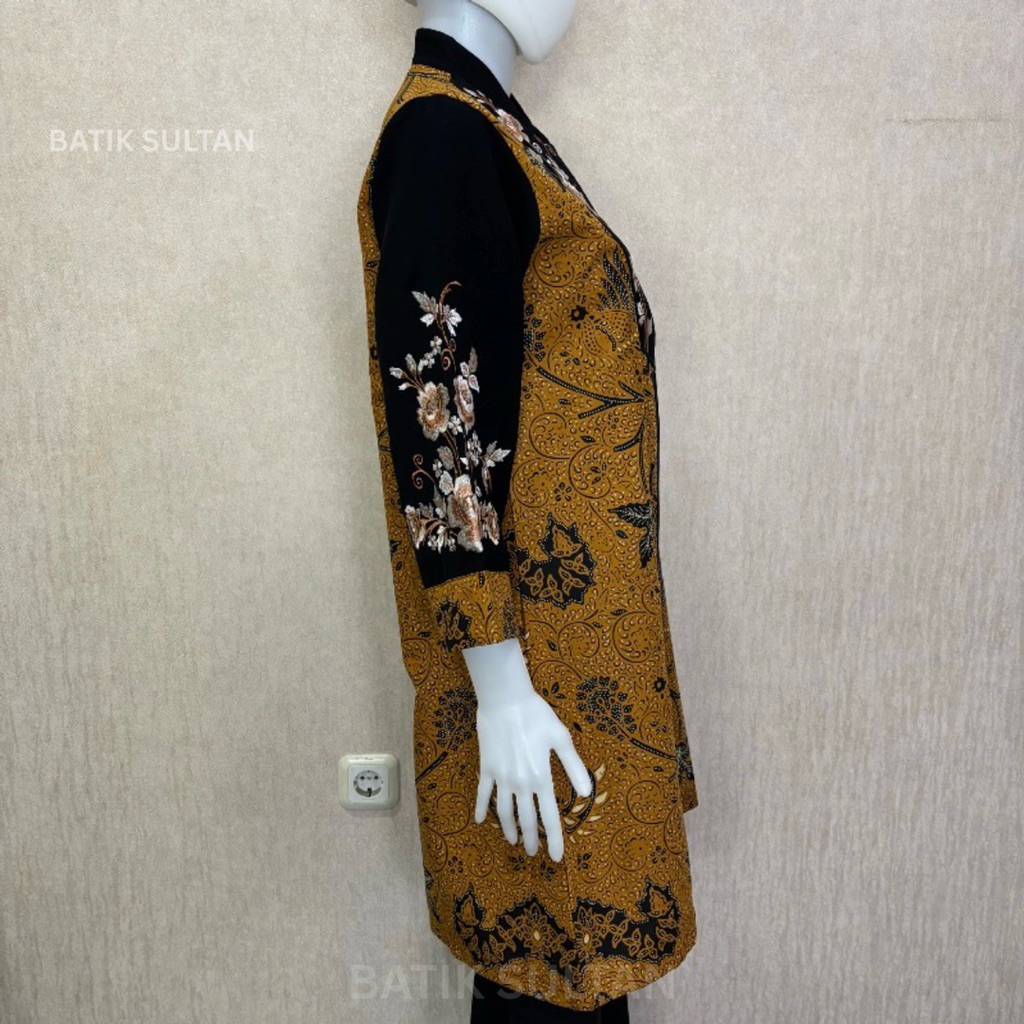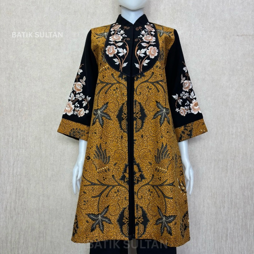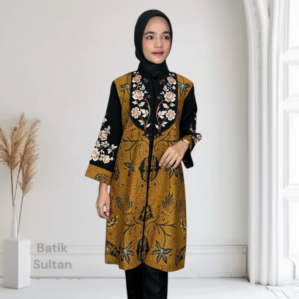 Atasan Tunik Batik Wanita Kain Katun Sogan Bordiran Reguler Fit Lapisan Tricot Waffle Mewah Elegan Formal Kantor Exclusi