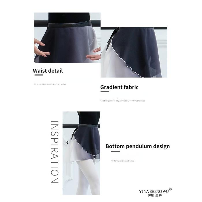 PROMO TERBATAS DUAL COLOR GRADIENT BALLET CHIFFON WRAP SKIRT ROK BALET SIFON LILIT BLACK WHITE