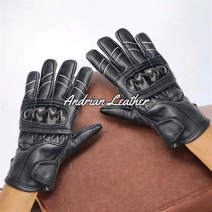 PROMO TERBATAS SARUNG TANGAN MOTOR KULIT ASLI PANJANG SPORTY PROTECTOR PELINDUNG TANGAN TOURING UNISEKS PRIA WANITA HITAM HITAM M