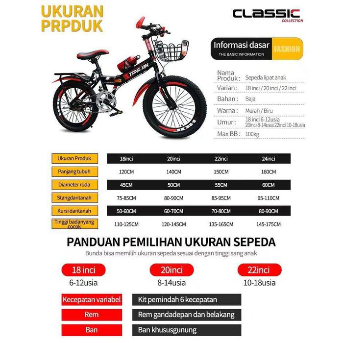 PROMO TERBATAS SEPEDA LIPAT ANAK 182022 INCI SEPEDA GUNUNG ANAK SEPEDA ANAK REM CAKRAM GANDA OFFROAD 6 KECEPATAN MERAH HITAM 22 INCI