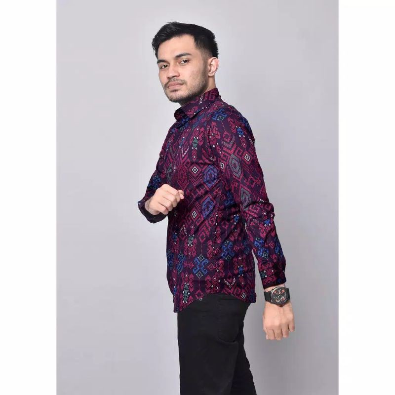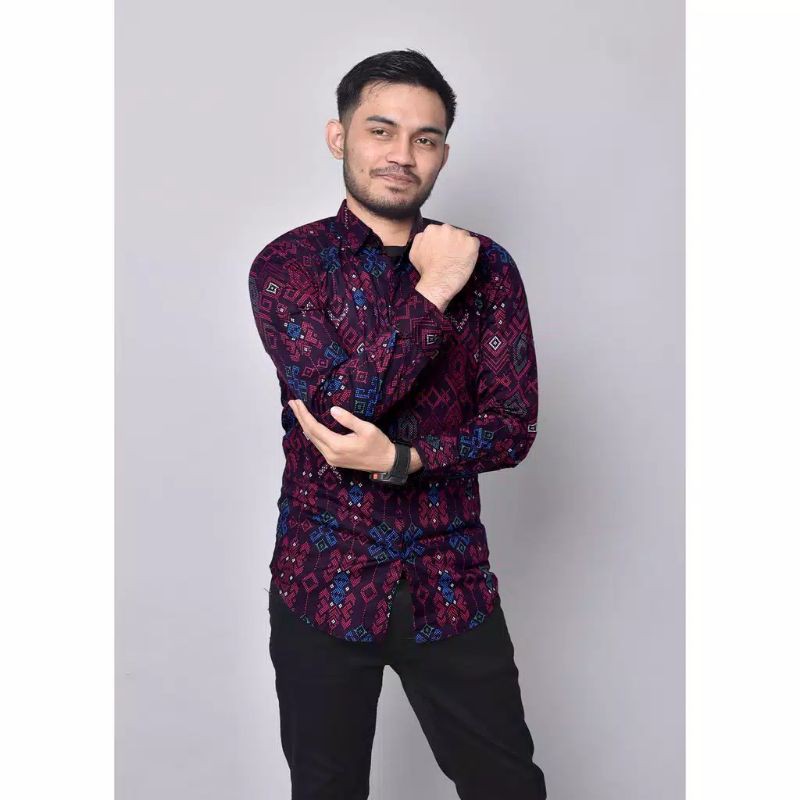 BIAJO.SHOP (READY BIG SIZE) KEMEJA BATIK PRIA SLIM FIT LENGAN PANJANG PREMIUM MOTIF SONGKET