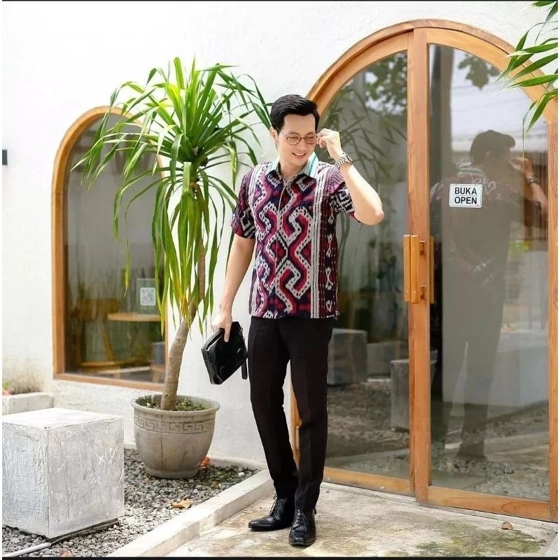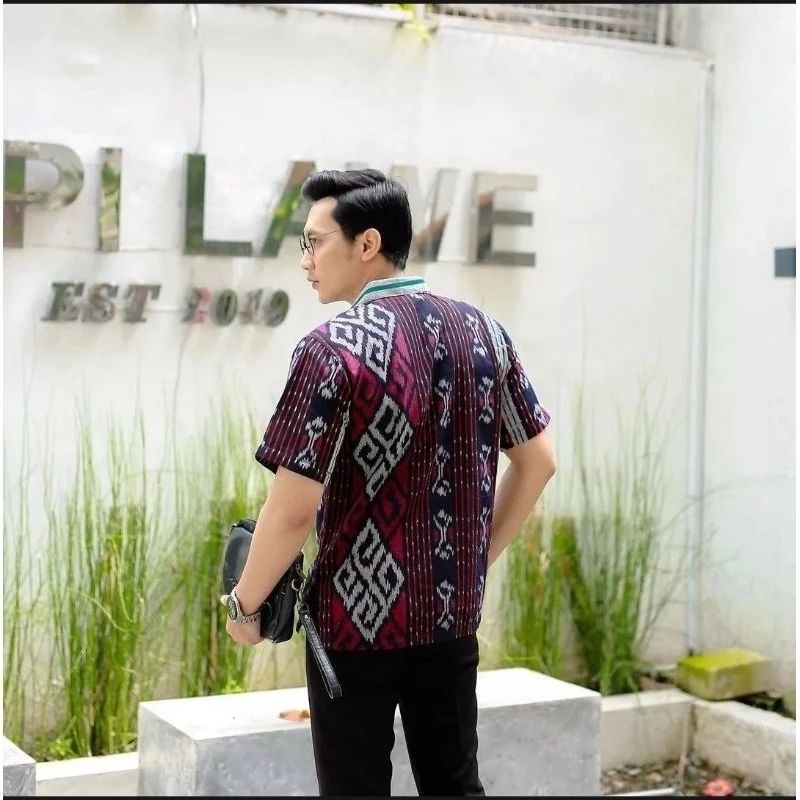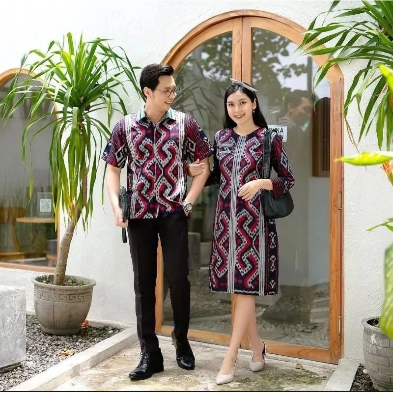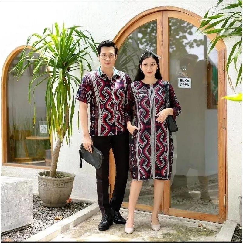 set couple tenun songket pasangan baju kondangan kemeja panjang dan pendek