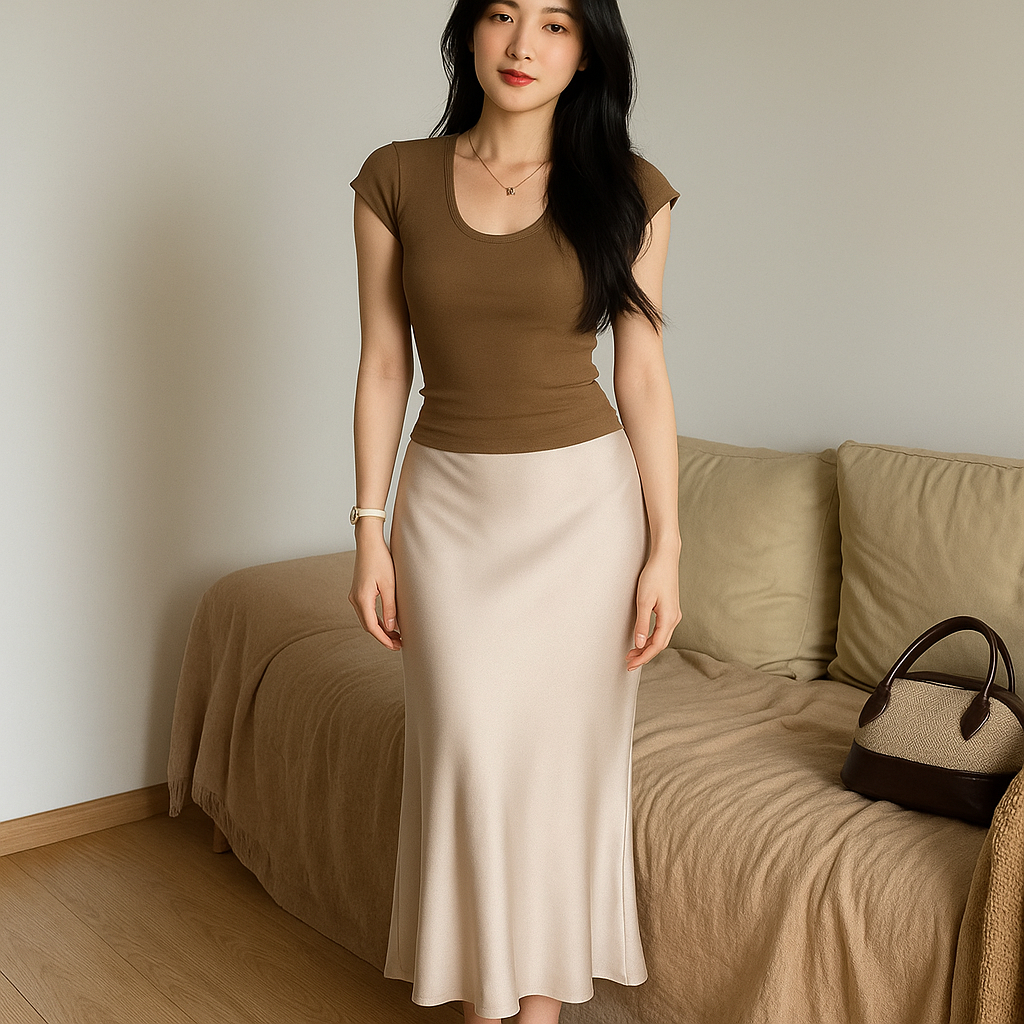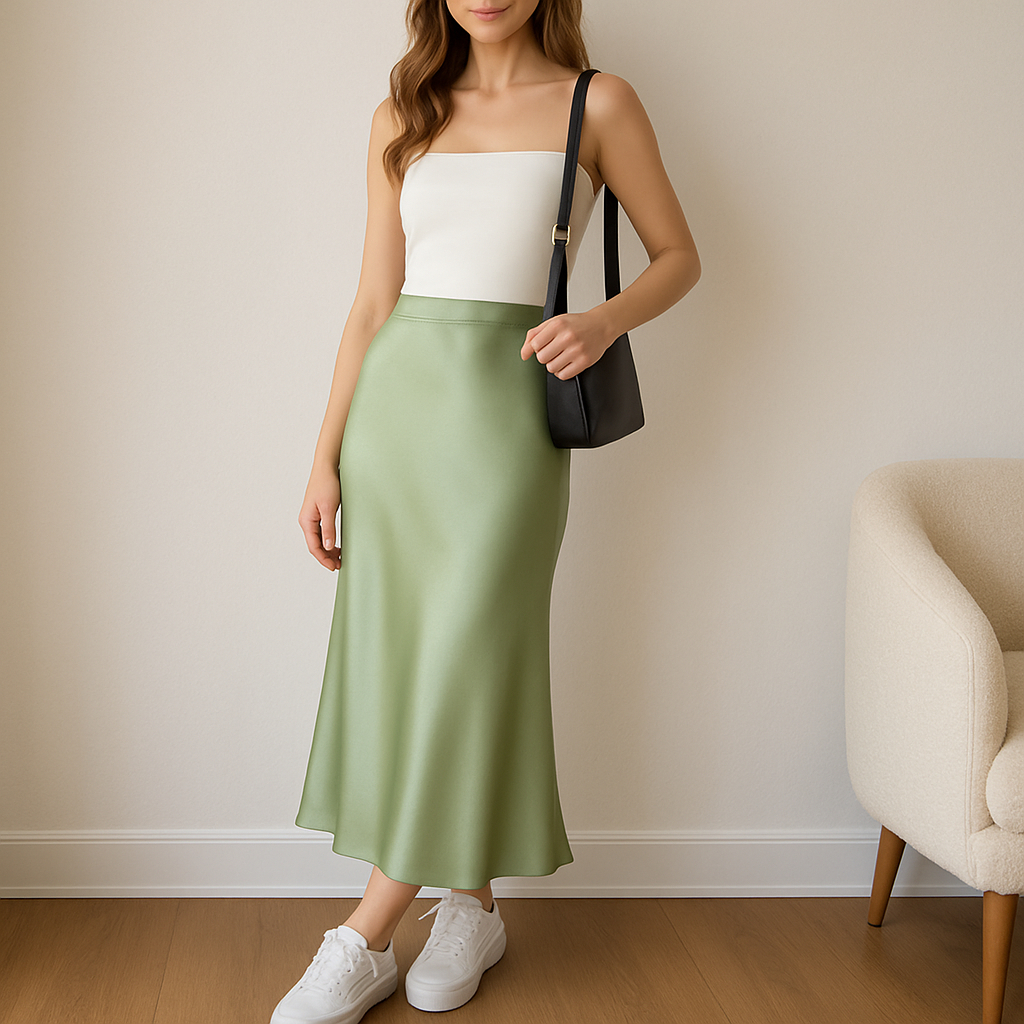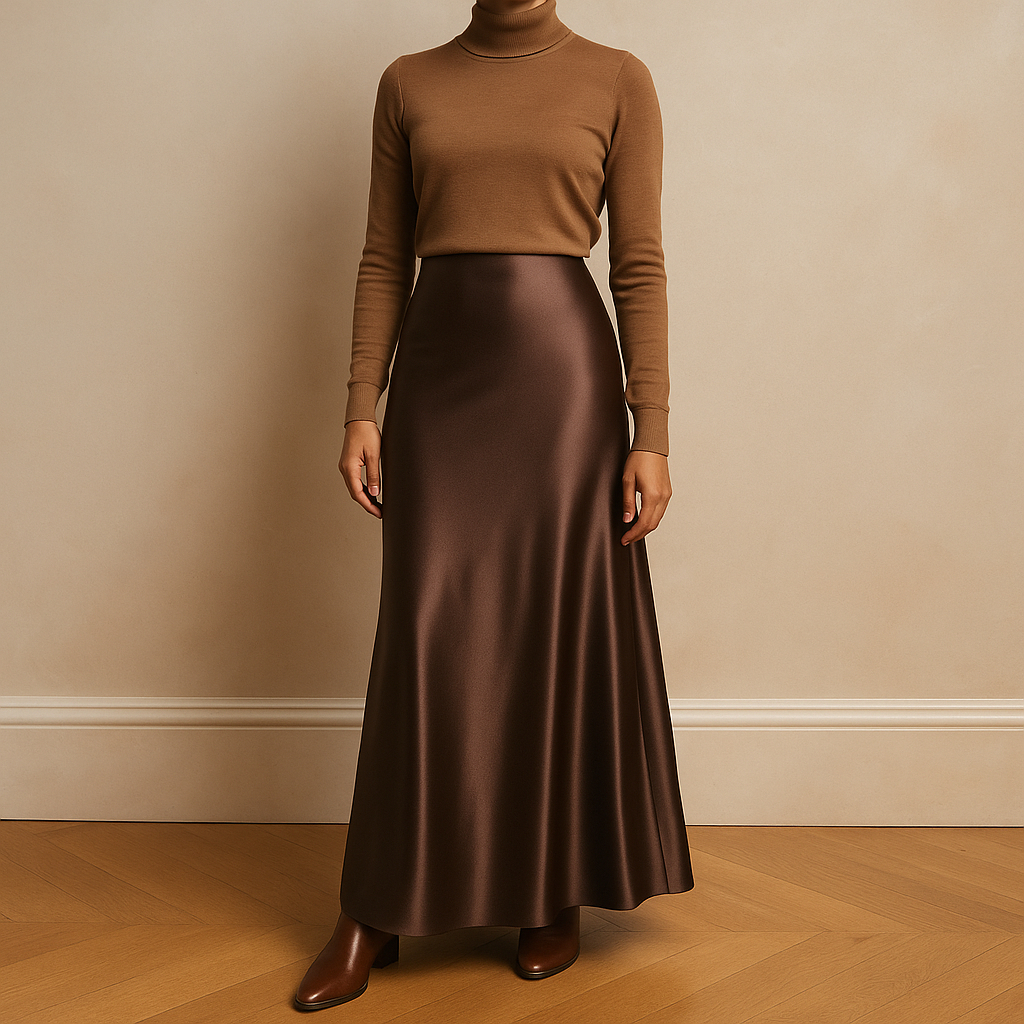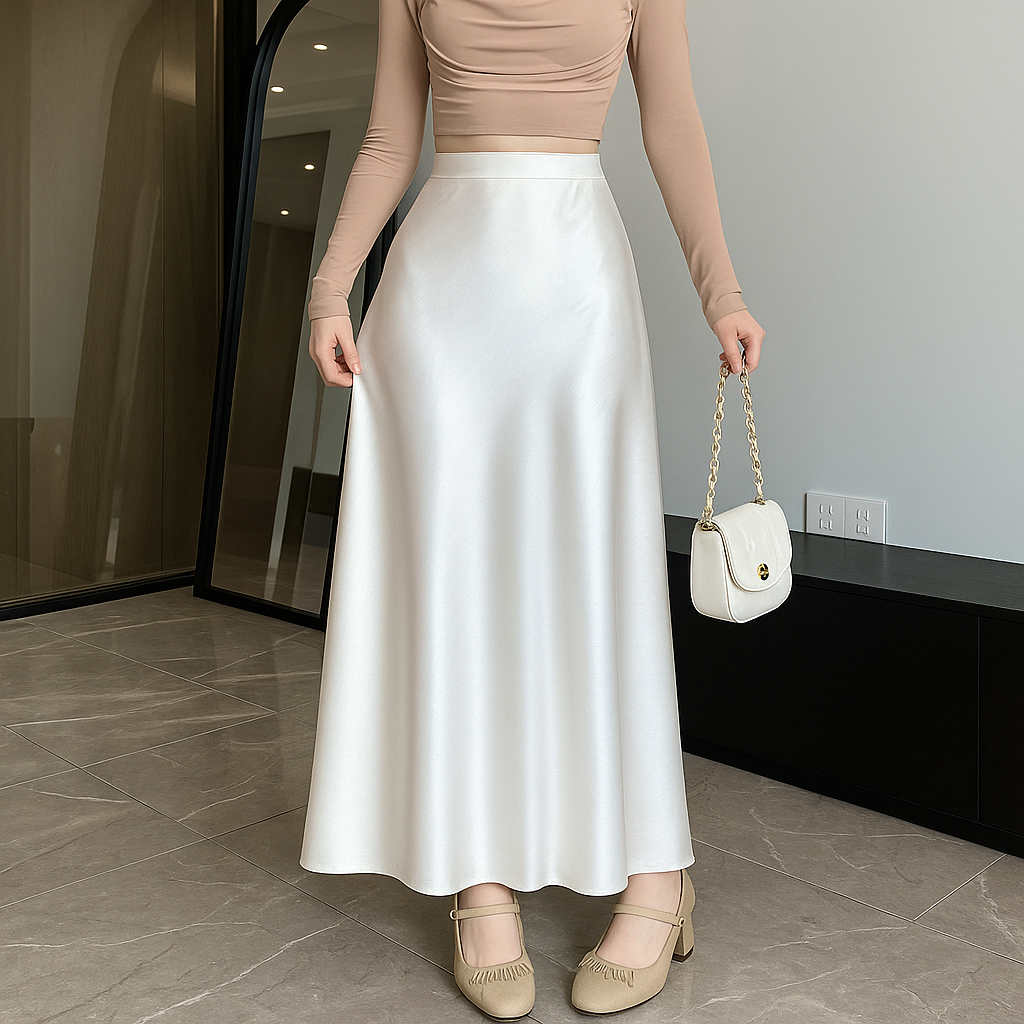 ROK SATIN SILK PREMIUM MAXI A LINE – LONG KOREAN SATIN SKIRT – LOOK SLIM – S–3XL | CAROSEL