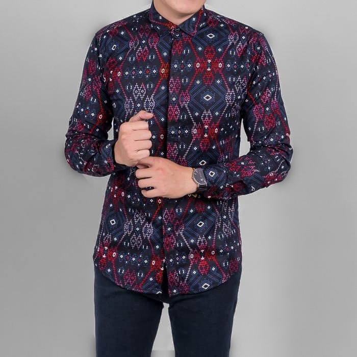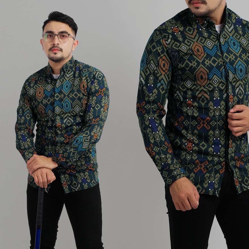 PAKAJI Kemeja Batik Hitam Songket Lengan Panjang Batik Songket Premium Pria Casual 002 C