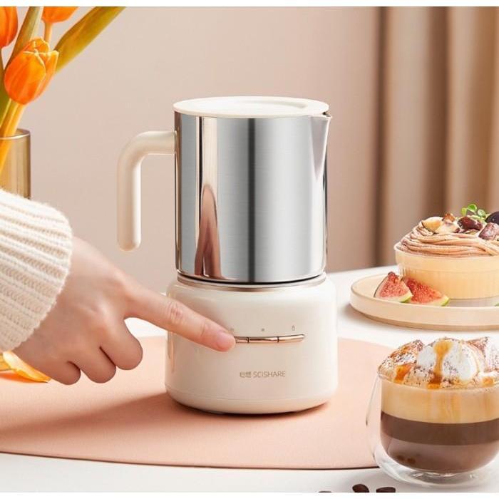 PROMO 8.8 SCISHARE MILK FROTHER STAINLESS STEEL DOUBLE MESH MILK CREAMER MAKER WHITE