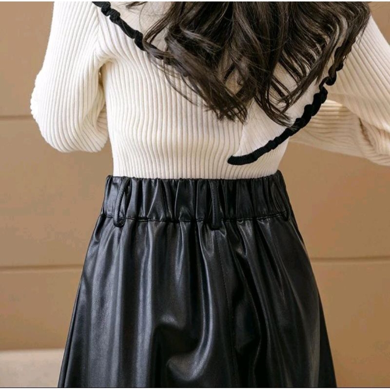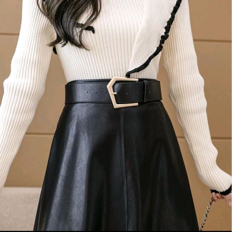 ROK WANITA SEMI KULIT PANJANG REMPEL/ROK PAYUNG FREE BELT TERBARU 2022