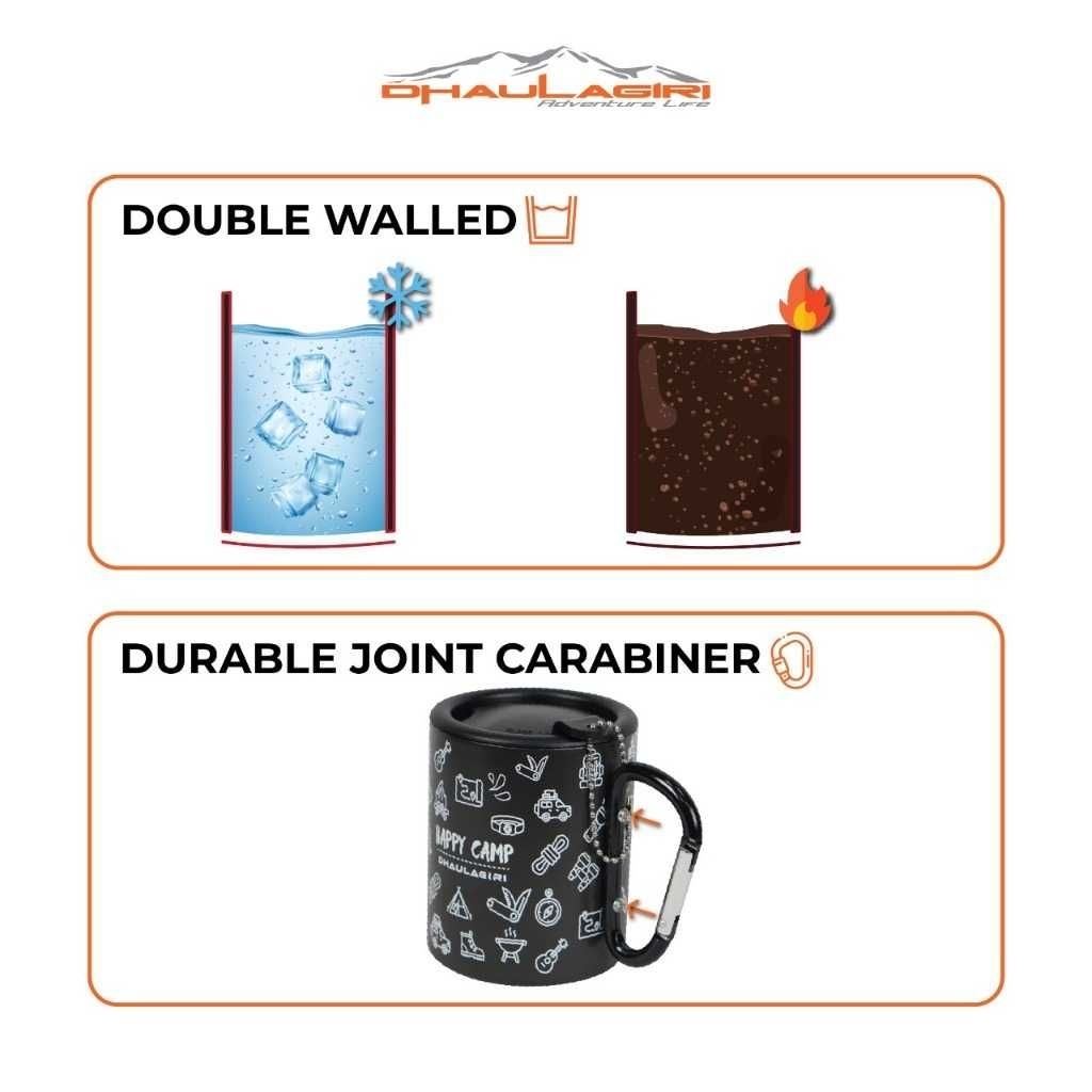 Mug carabiner dhaulagiri stainless steel cangkir gantung karabiner gelas outdoor camping piknik double wall