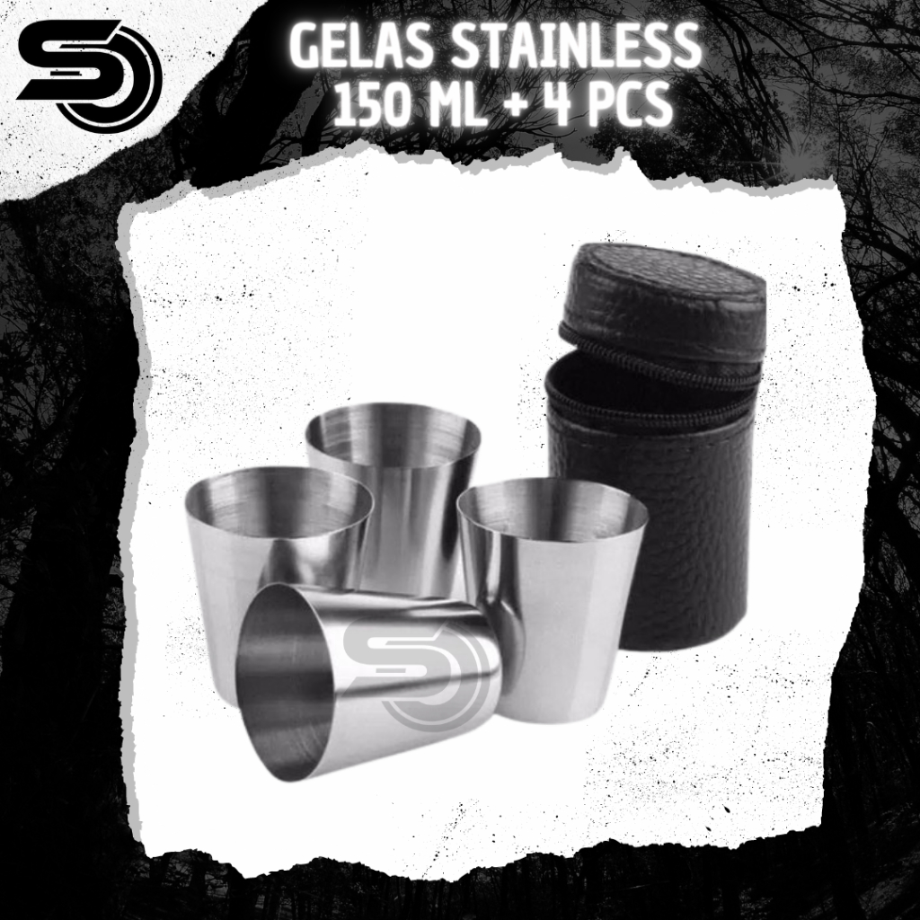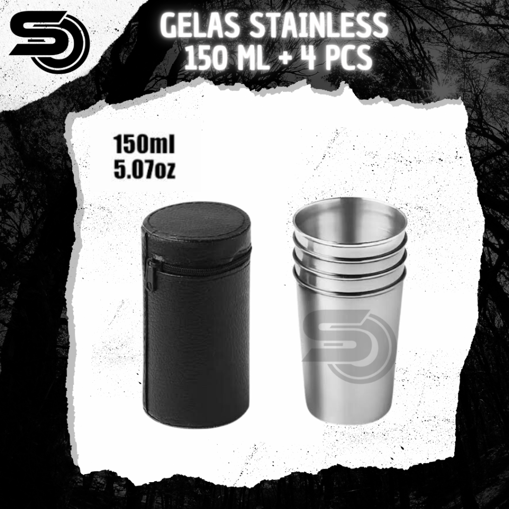 Gelas Mug Kopi Teh 150ml Set 4 in 1 Stainless Steel Anti Karat Camping Outdoor