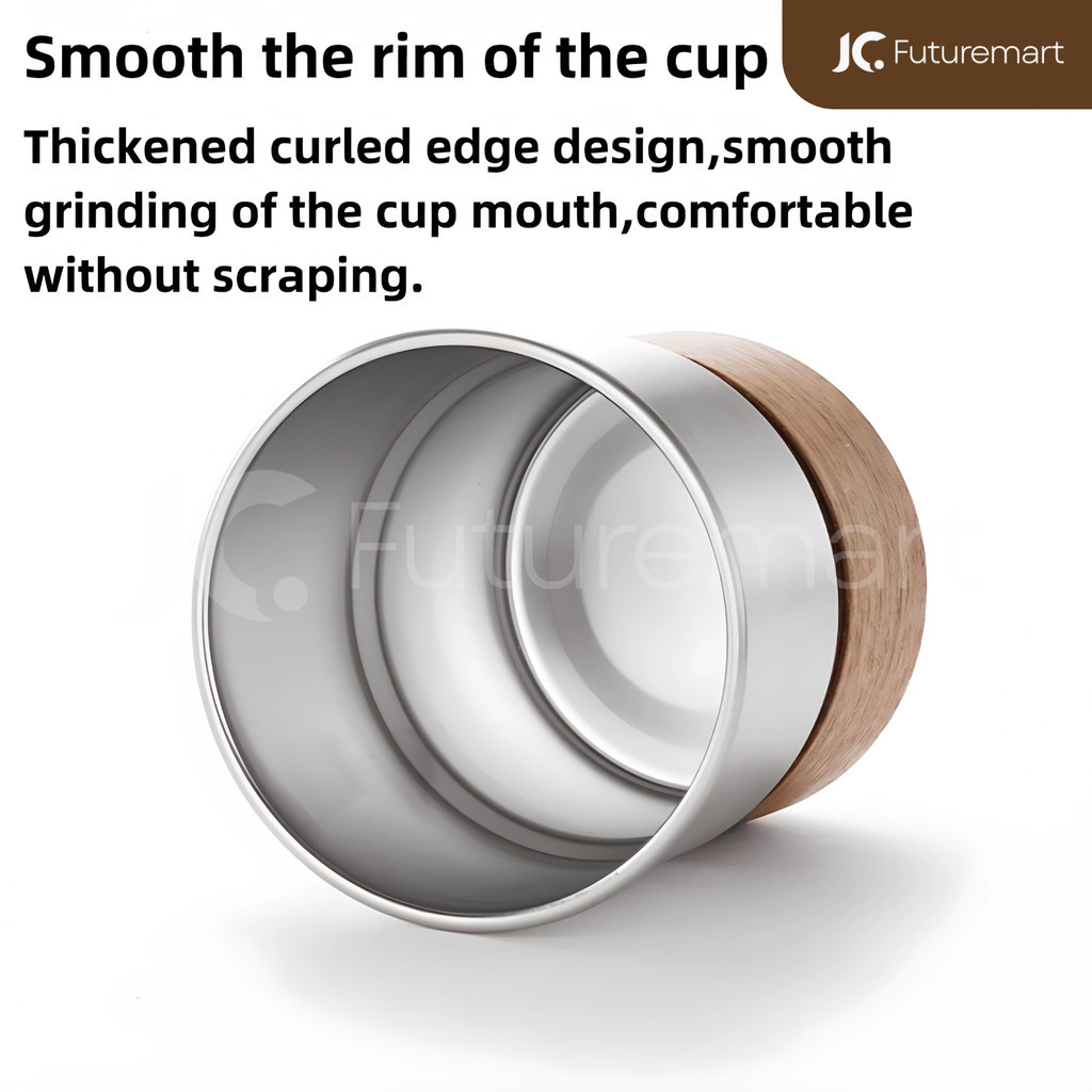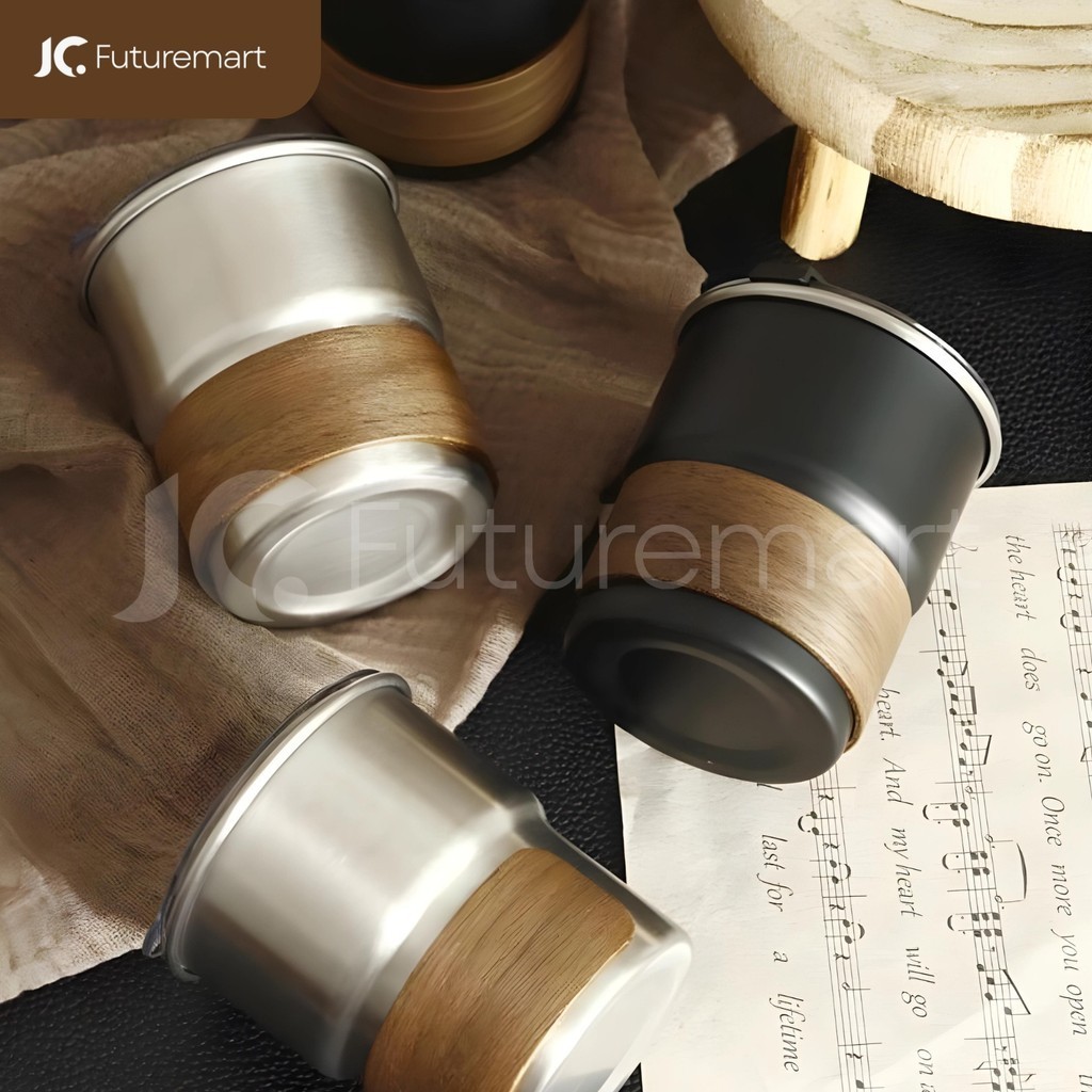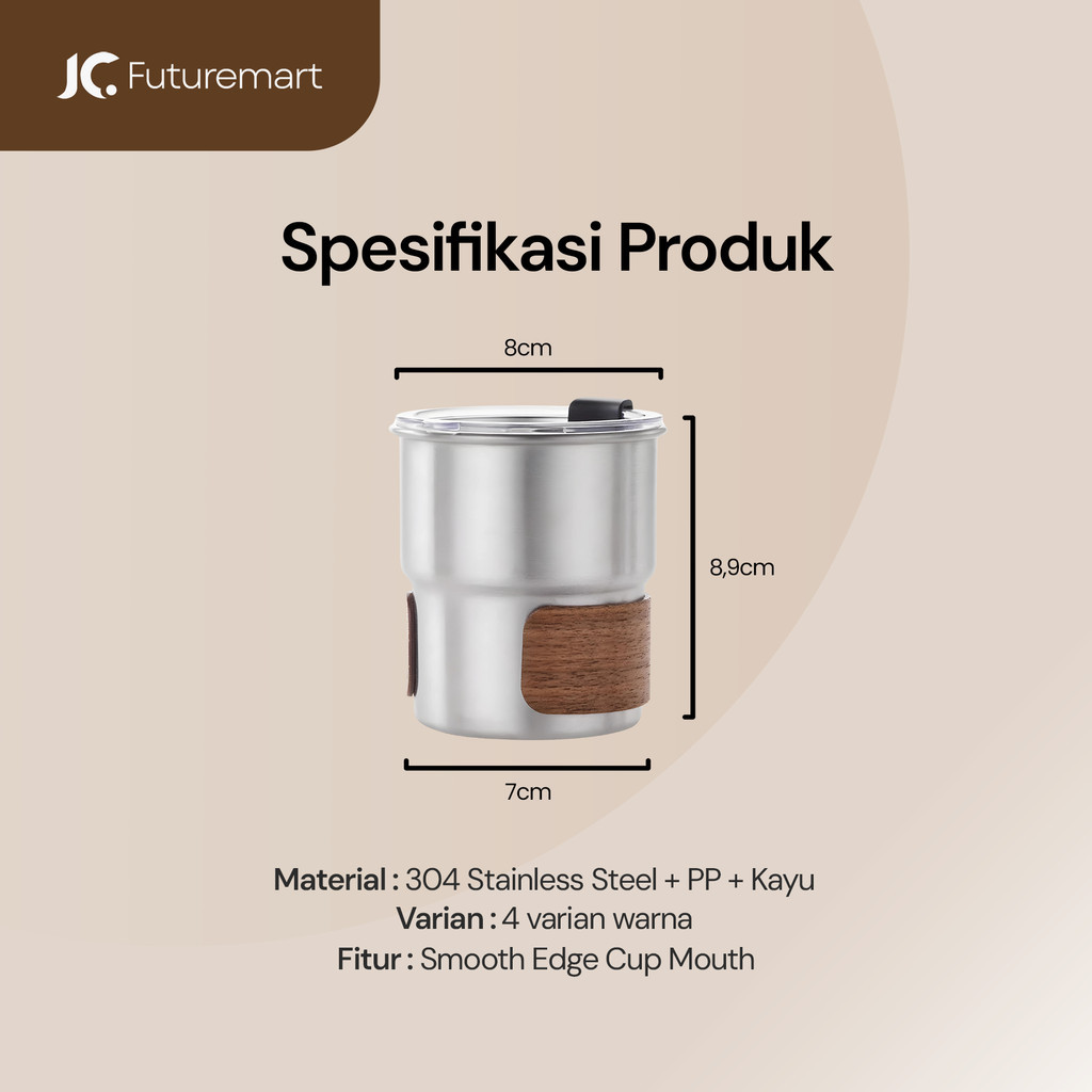 Coffee Mug Cangkir kopi teh Stainless handle kayu camping 300ml SB665