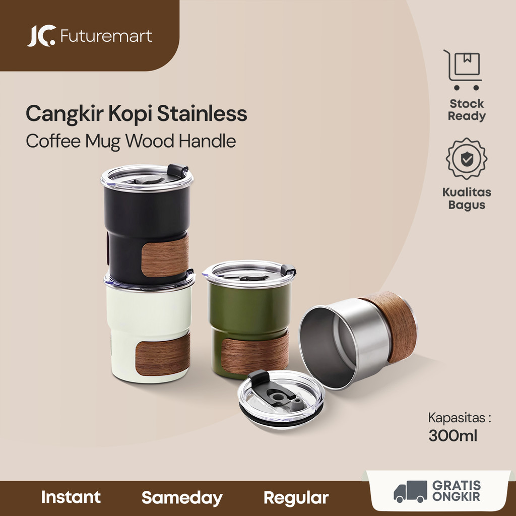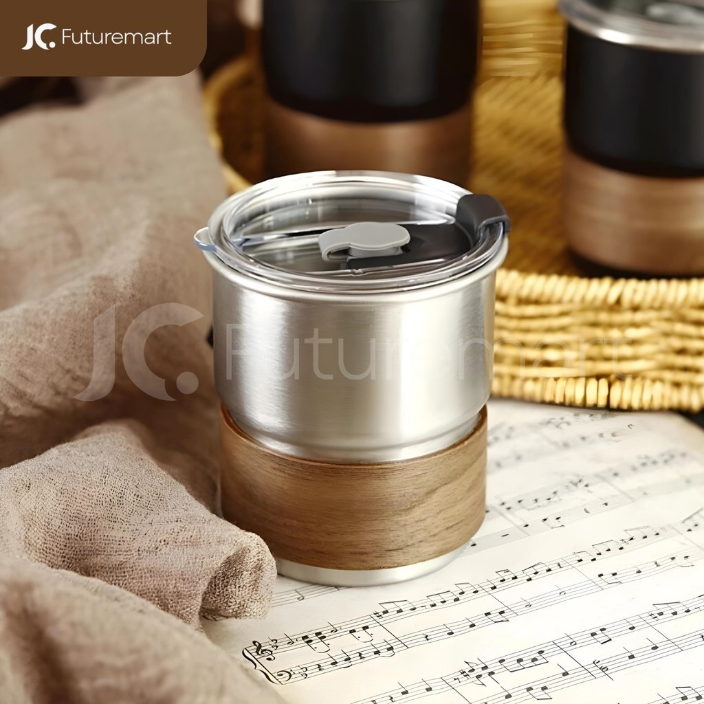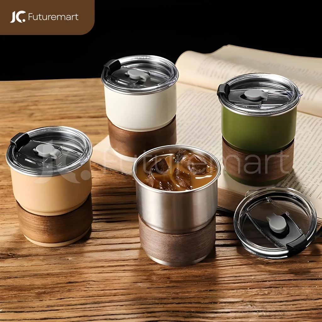 Coffee Mug Cangkir kopi teh Stainless handle kayu camping 300ml SB665