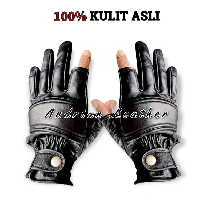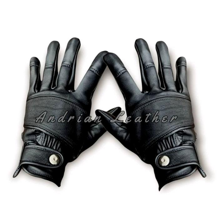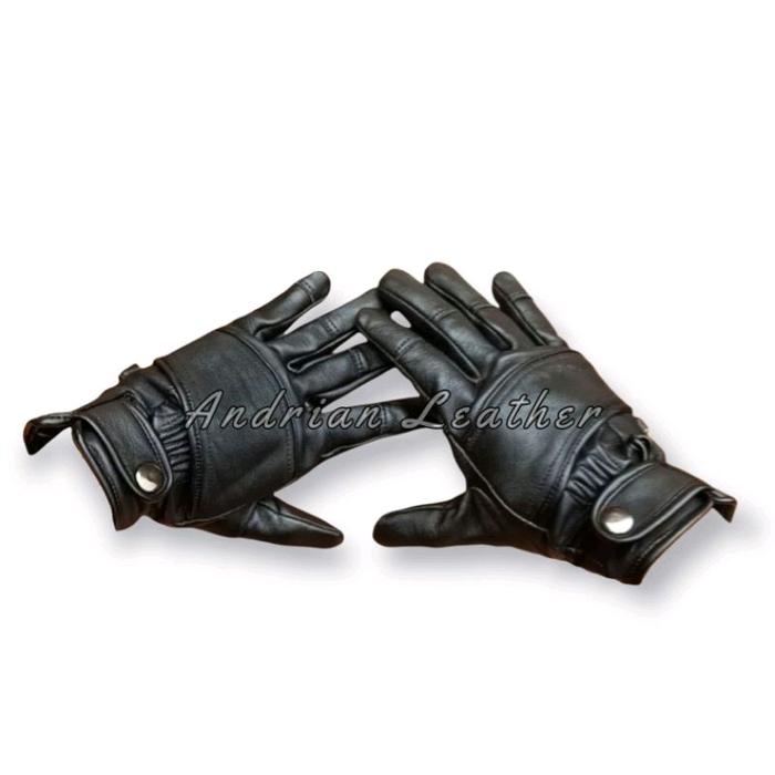 PROMO TERBATAS SARUNG TANGAN MOTOR KULIT ASLI SPORTY TAHAN ANGIN SPORTS GLOVES HITAM (FULL JARI) M