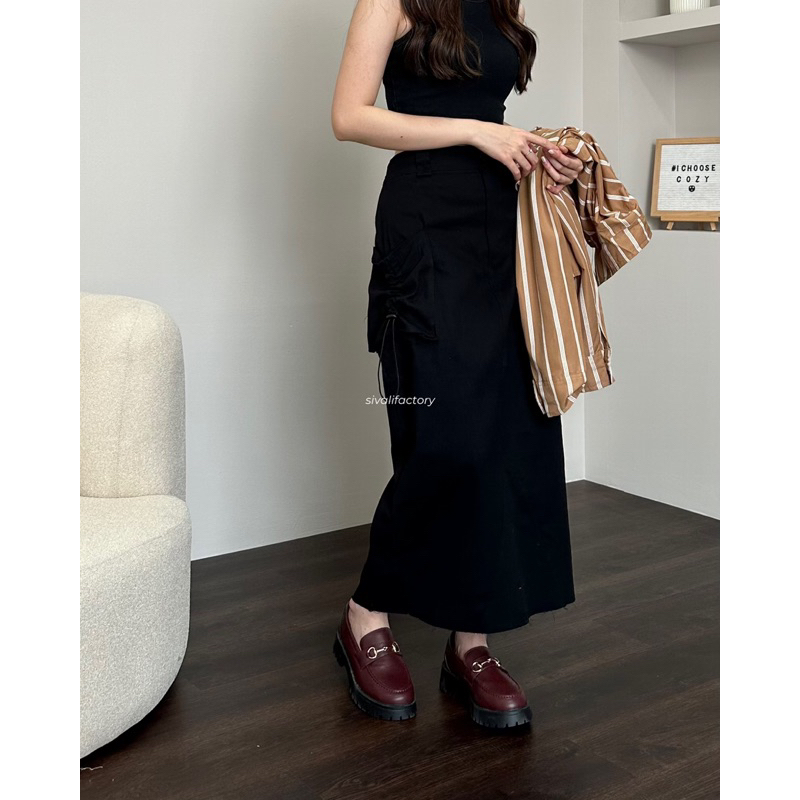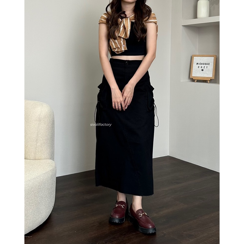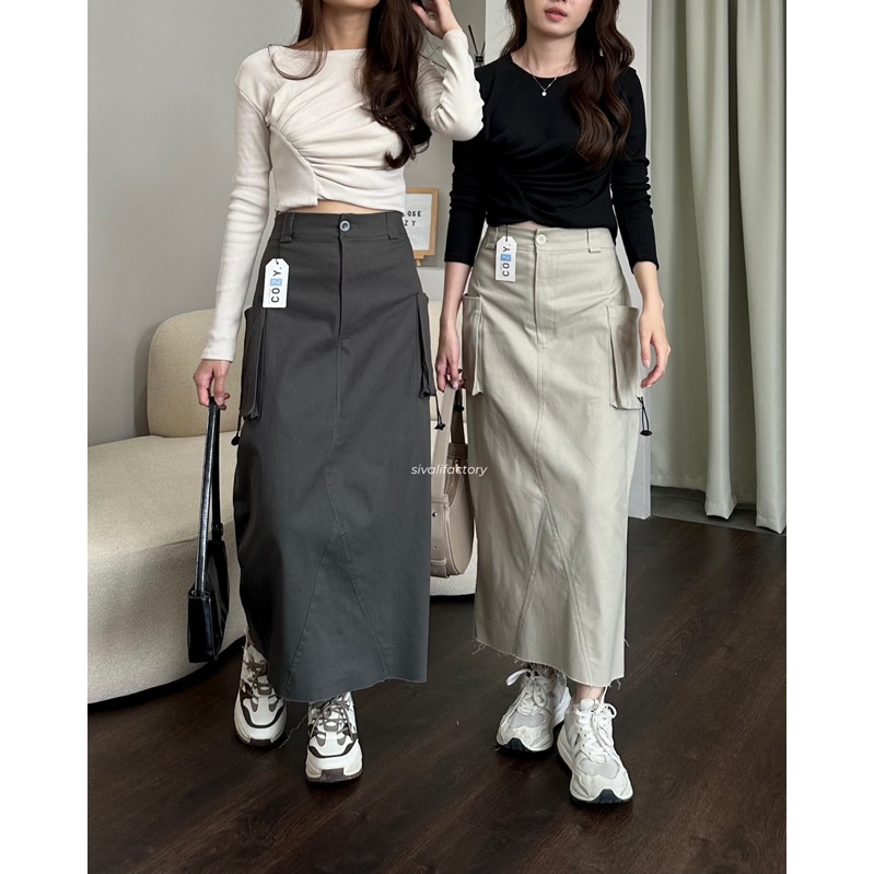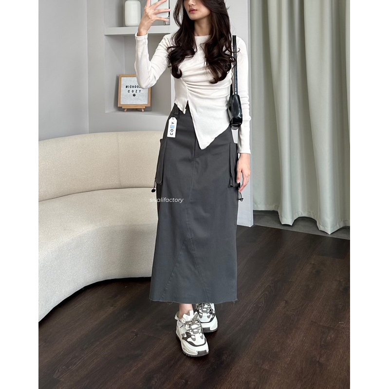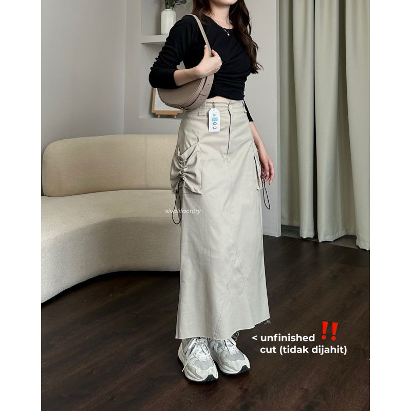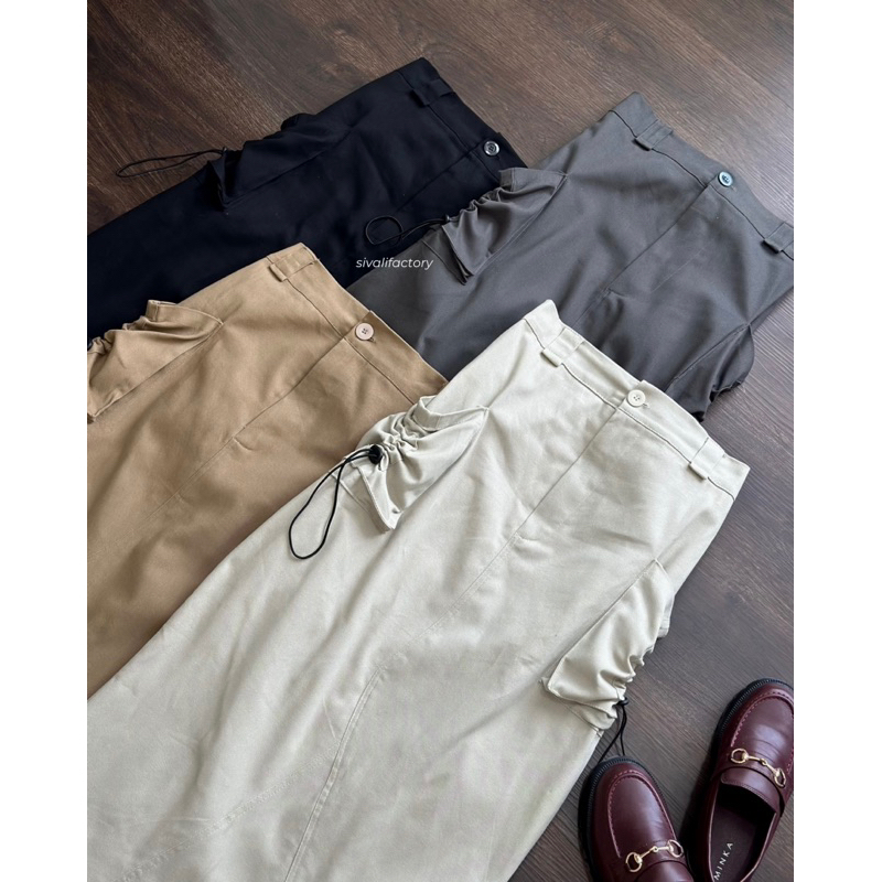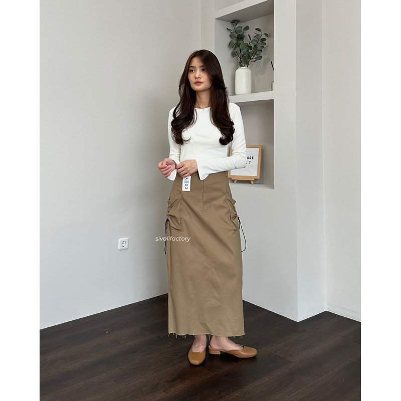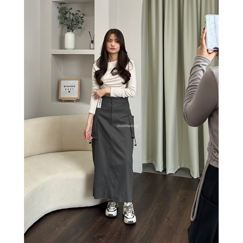 SIVALI MILAN SKIRT - ROK KARGO SERUT WANITA POCKET LONG SKIRT MAXI PANJANG