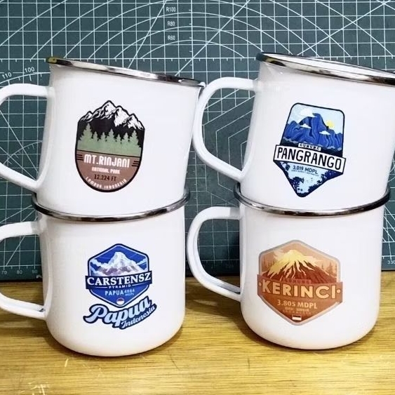 mug cangkir gelas enamel stainlees besi tebal 9cm souvenir oleh oleh outdoor ung indonesia carstensz pyramid papua rinja