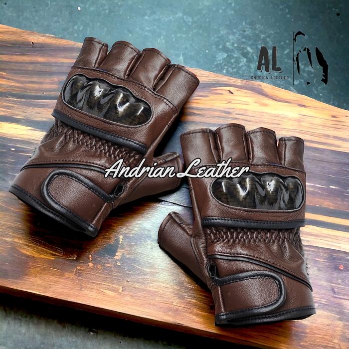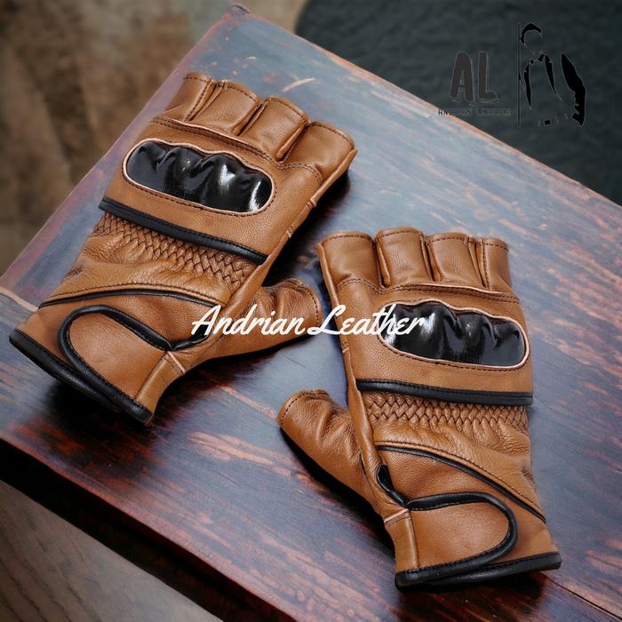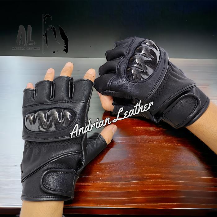 PROMO TERBATAS SARUNG TANGAN MOTOR SARUNG TANGAN PROTECTOR PENDEK KULIT ASLI BATOK HITAM