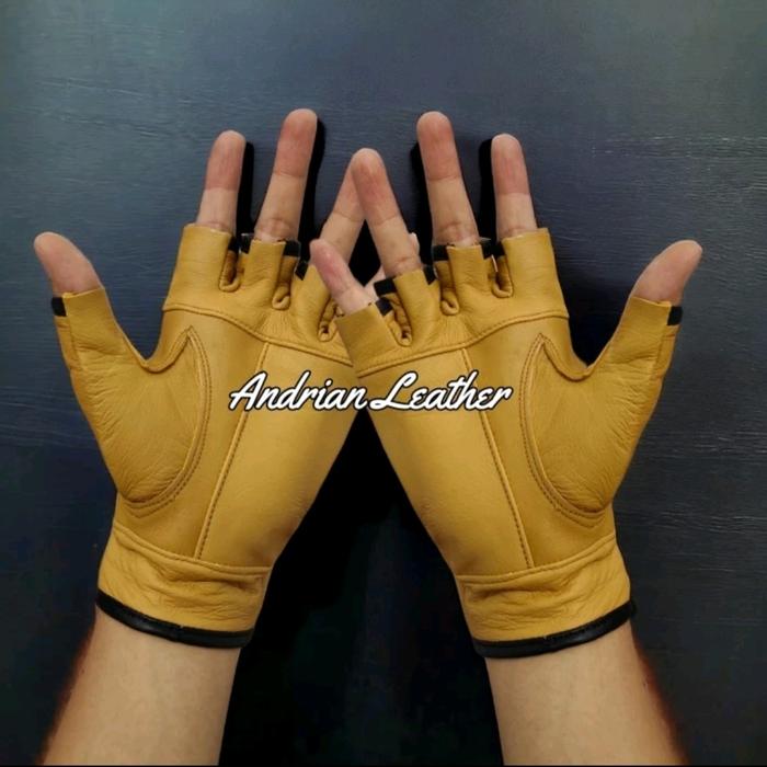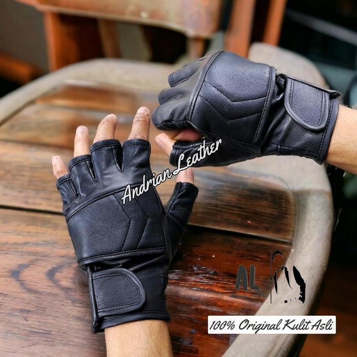 PROMO TERBATAS SARUNG TANGAN MOTOR 100 PERSEN ORIGINAL KULIT ASLI | SARUNG TANGAN KULIT ASLI PENDEK SETENGAH JARI PRIA WANITA HITAM M
