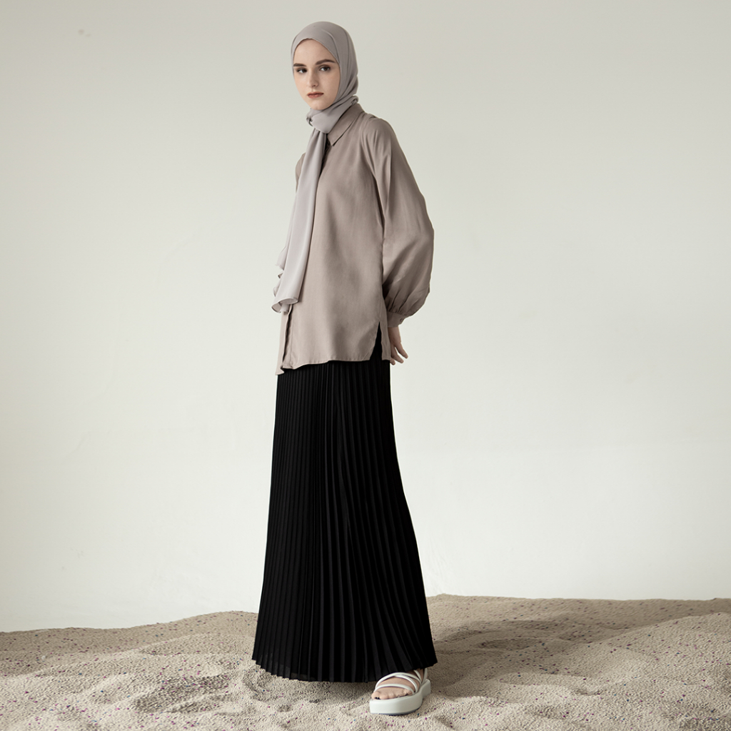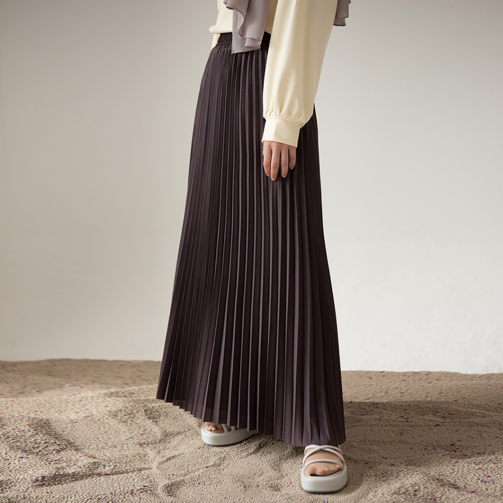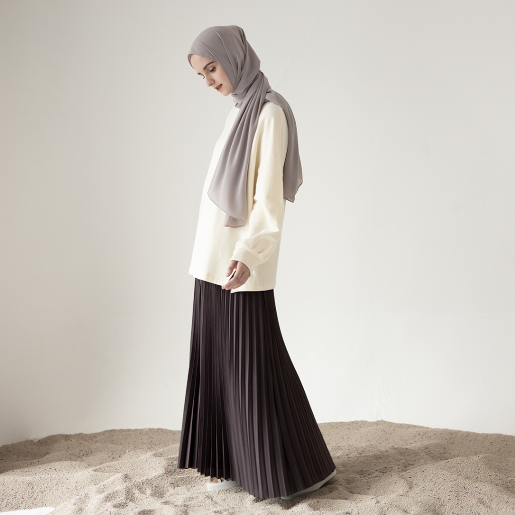 RESKA SKIRT BY ASKA LABEL - ROK WANITA PLEATS ROK PLISKET PINGGANG FULL KARET WARNA PINK MAUVE, ABU TUA DARK GREY, HITAM BLACK