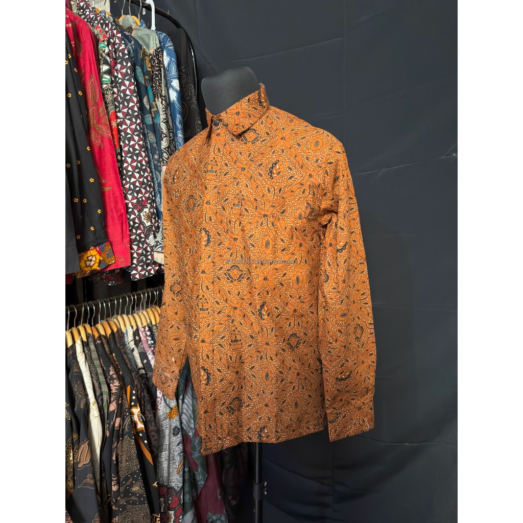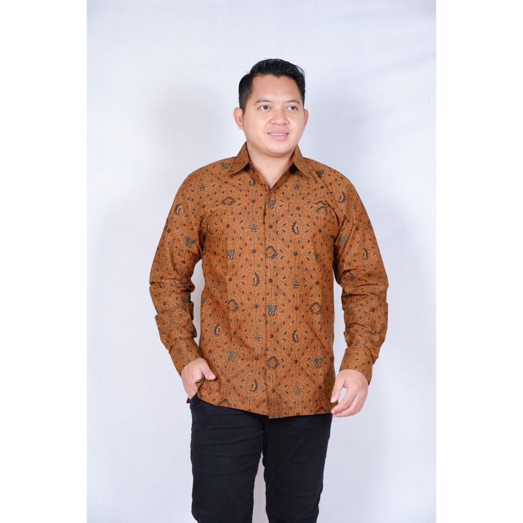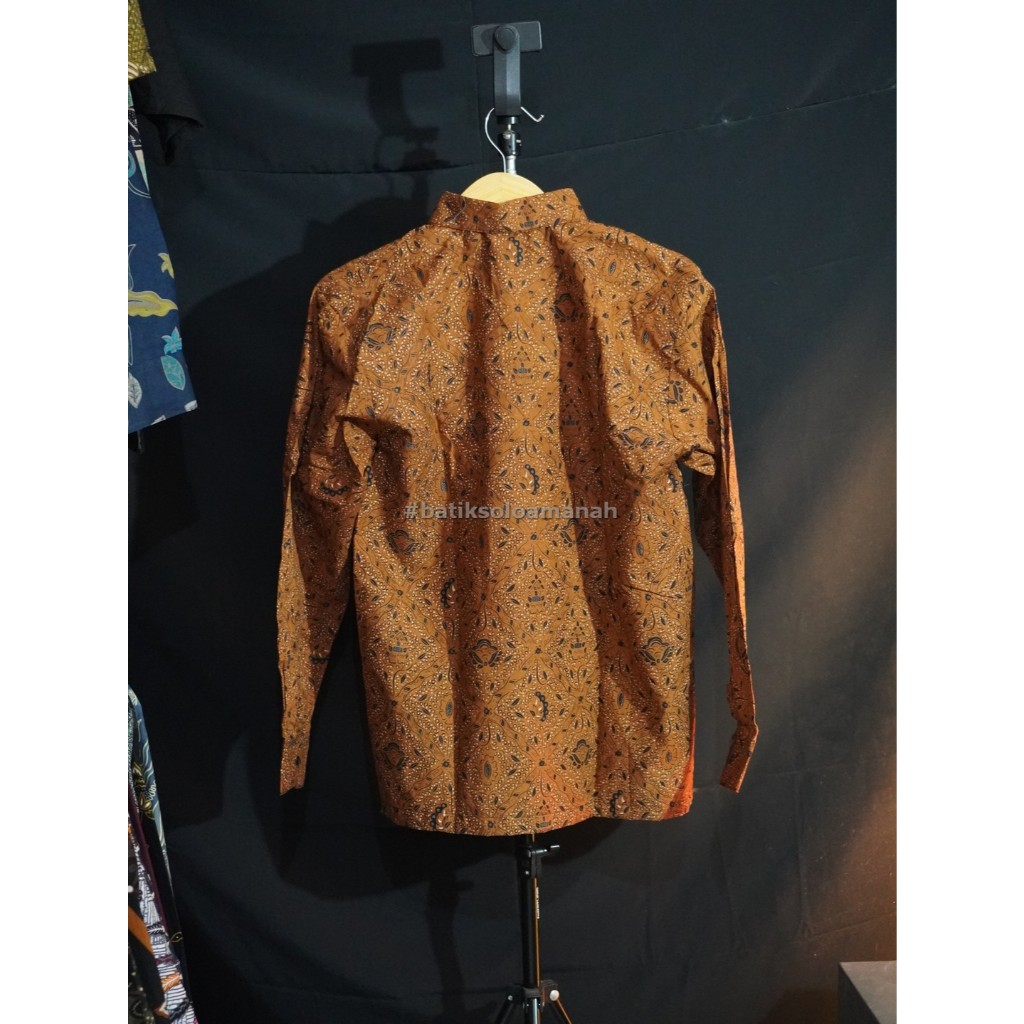 SIDOMUKTI COKLAT BATIKSOLOAMANAH KEMEJA BATIK PRIA LENGAN PANJANG PENDEK LAPIS FURING ATASAN BATIK
