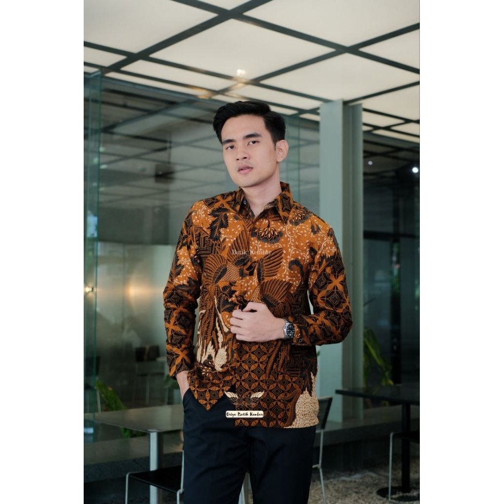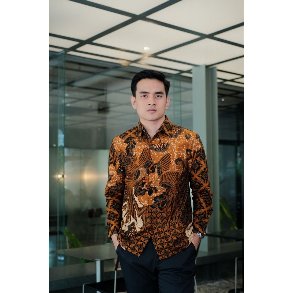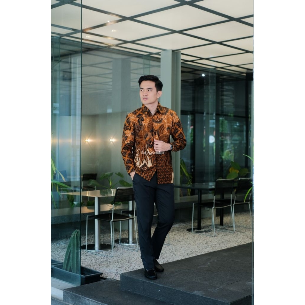 MOTIF NARENDRA COKLAT Lengan Panjang Reguler Baju Batik Pria Kain Katun Premium Lapisan Furing