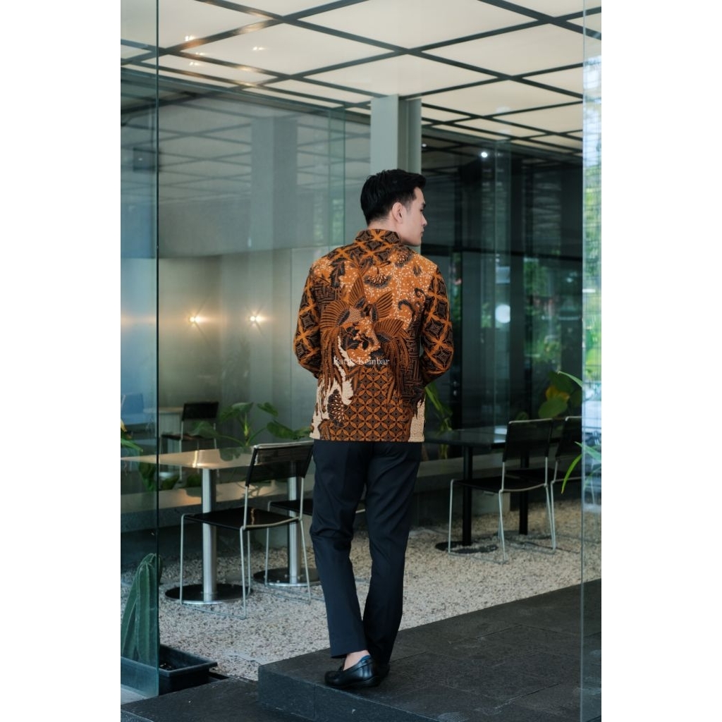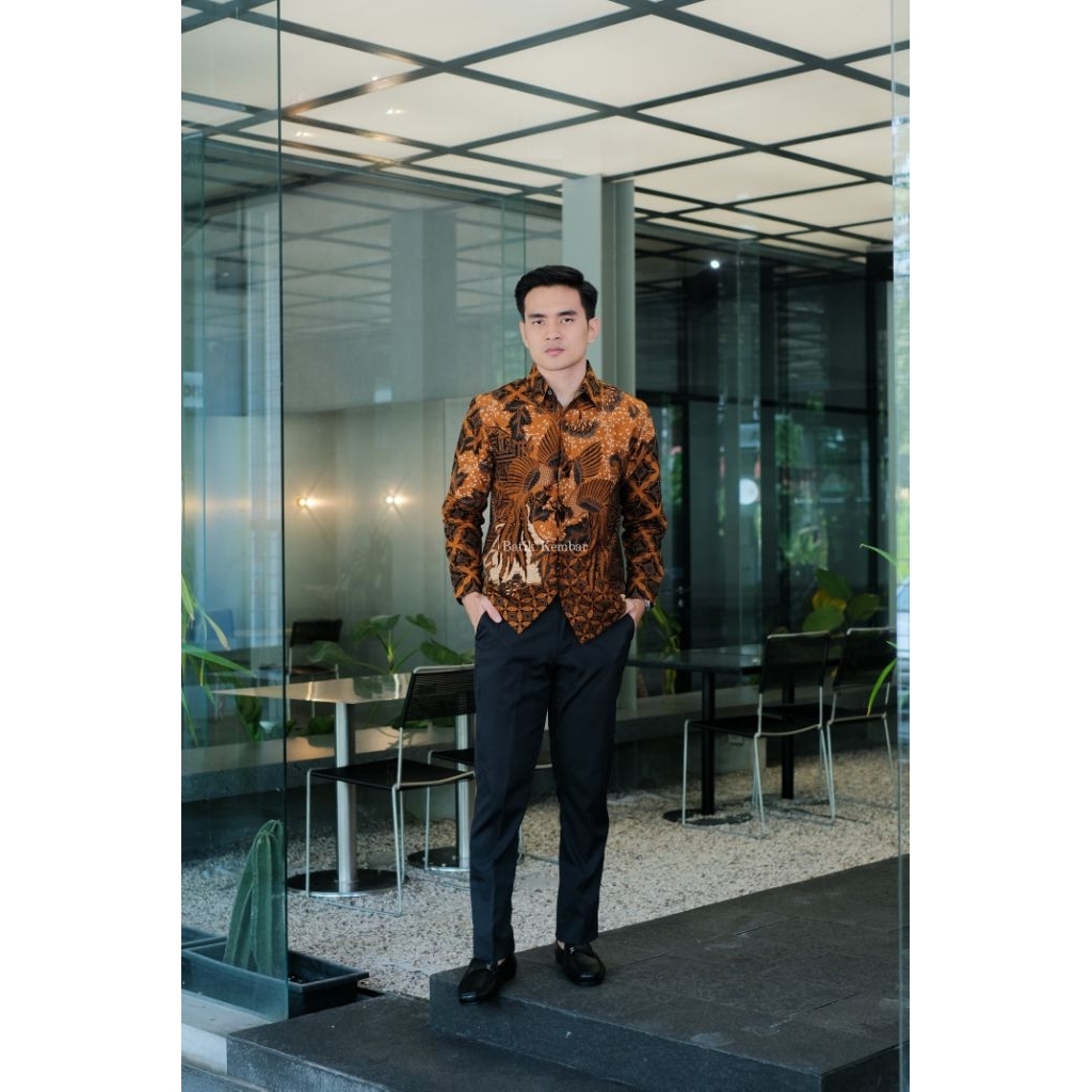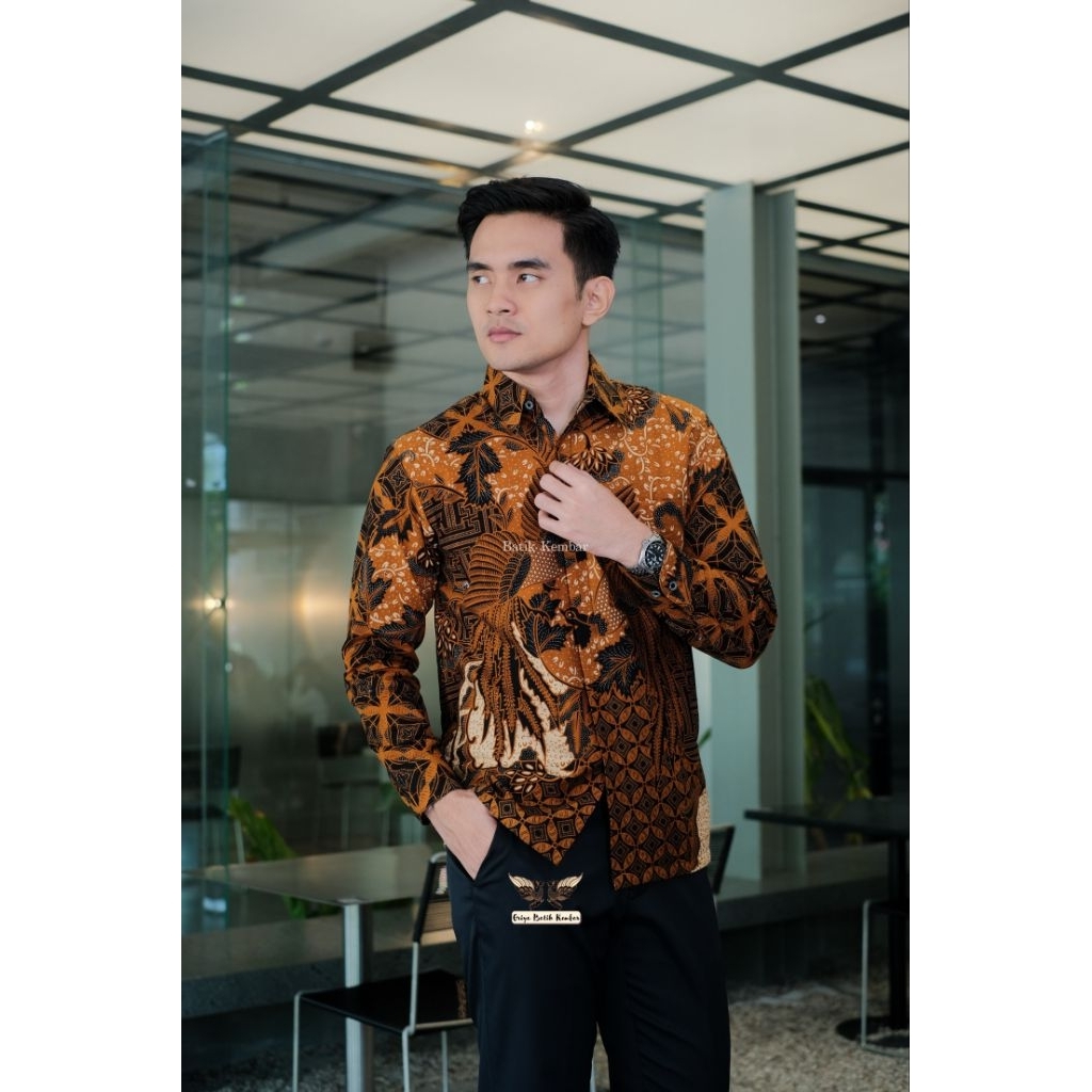 MOTIF NARENDRA COKLAT Lengan Panjang Reguler Baju Batik Pria Kain Katun Premium Lapisan Furing