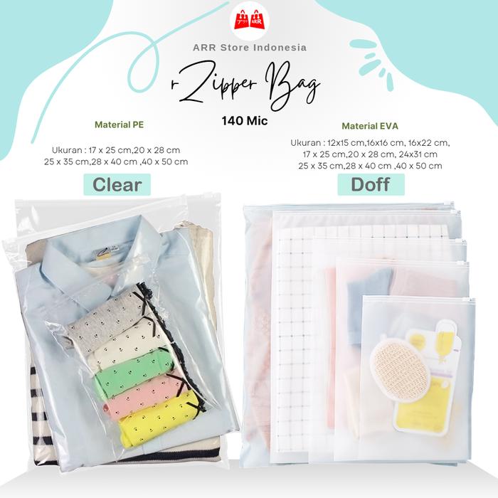 PROMO 8.8 KANTONG KLIP KAN BAJU PLASTIK ZIPLOCK BAG TRANSPARAN DOFF & CLEAR CLEAR 17X25CM