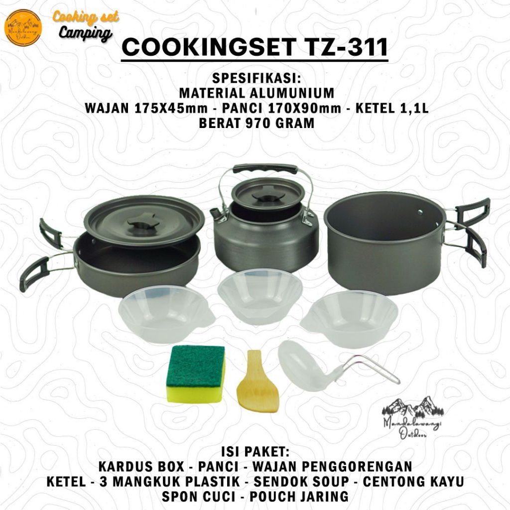 ALAT MASAK CAMPING TENDAKI COOKINGSET NESTING COOKING SET DS 308 DAN DS 301 DAN DS 300 DAN DS 200 DAN SY 200 DAN DS 101