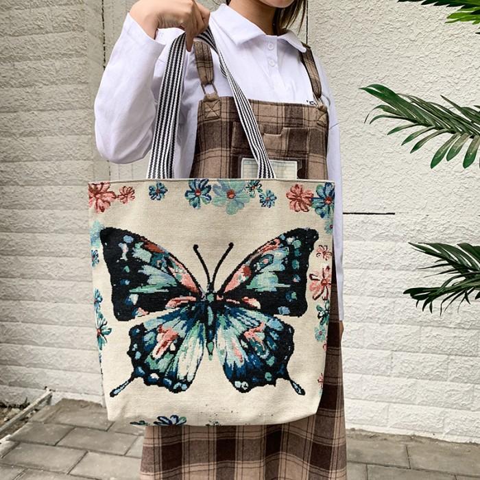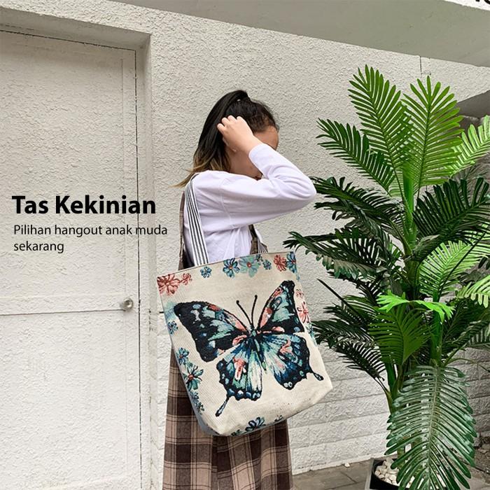 PROMO 8.8 TAS TOTE BAG SELEMPANG SLING BAG KANVAS WANITA THAILAND MOTIF FLOWER SEAHORSE