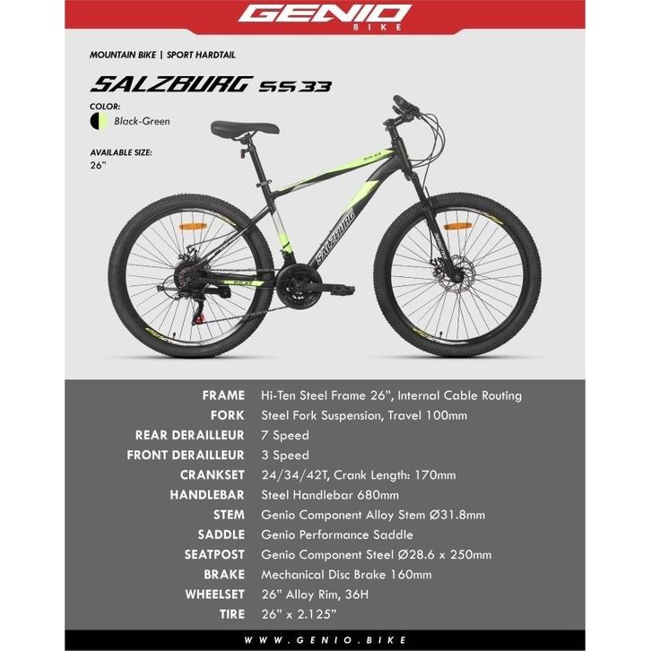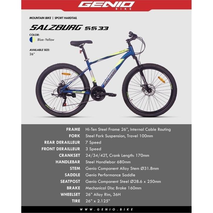 Terbaru MTB Sepeda gunung 26 inci GENIO SALZBURG speed 21