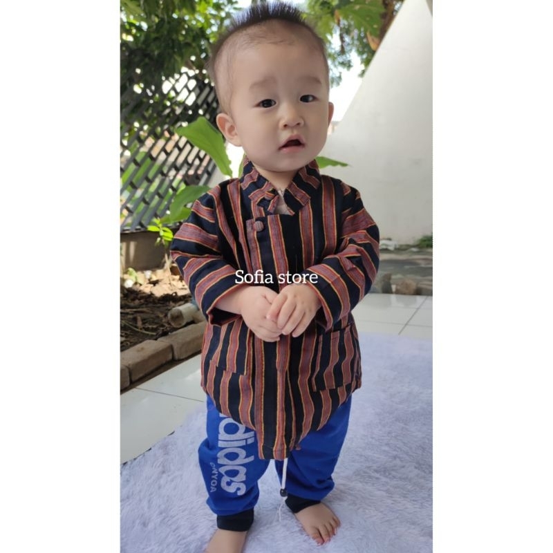 Baju Surjan Sorjan Anak Laki-laki Kostum Pakaian Tradisional Adat Jawa Lurik