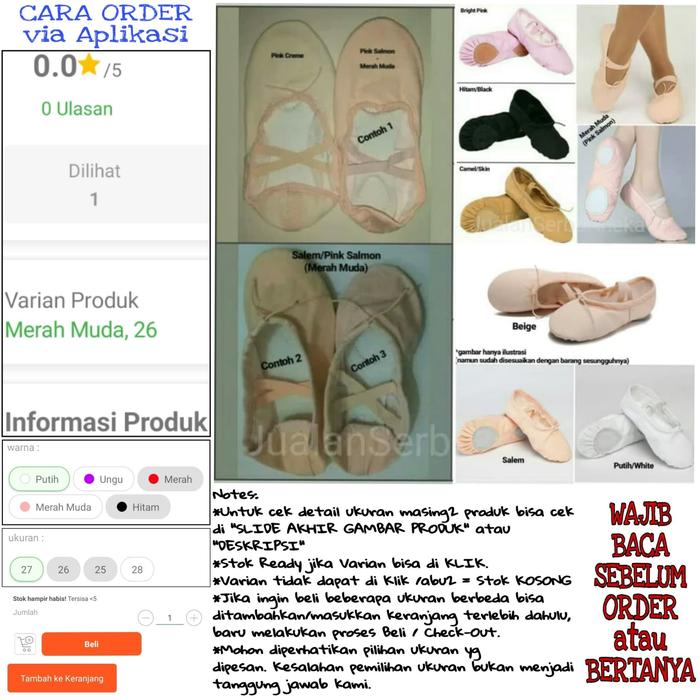 PROMO TERBATAS SEPATU BALET BALLET SHOES SPLIT SOLE UKURAN DEWASA HITAM 35