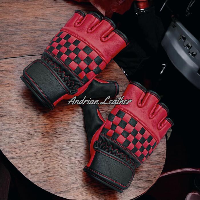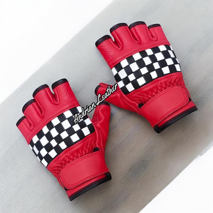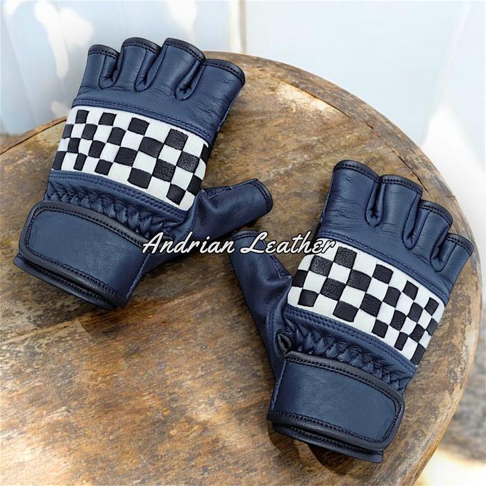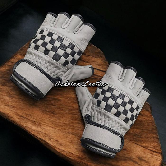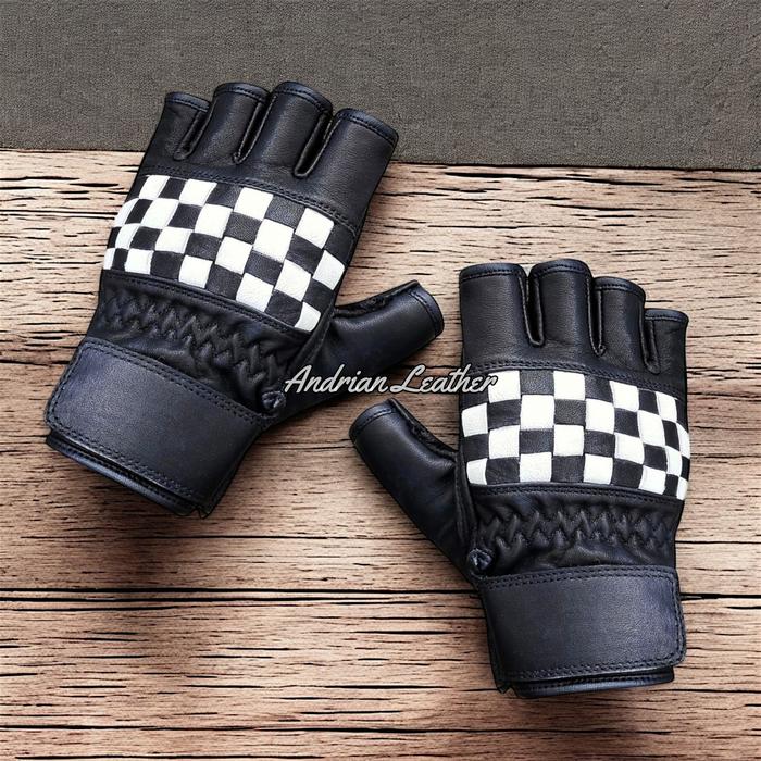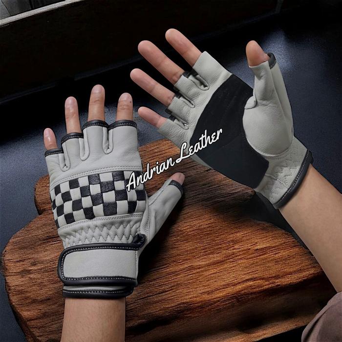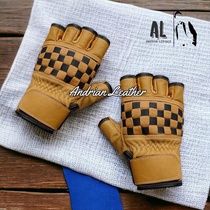 PROMO TERBATAS SARUNG TANGAN MOTOR KULIT ASLI CORAK CATUR RETRO PENDEK PREMIUM BURLYWOOD M