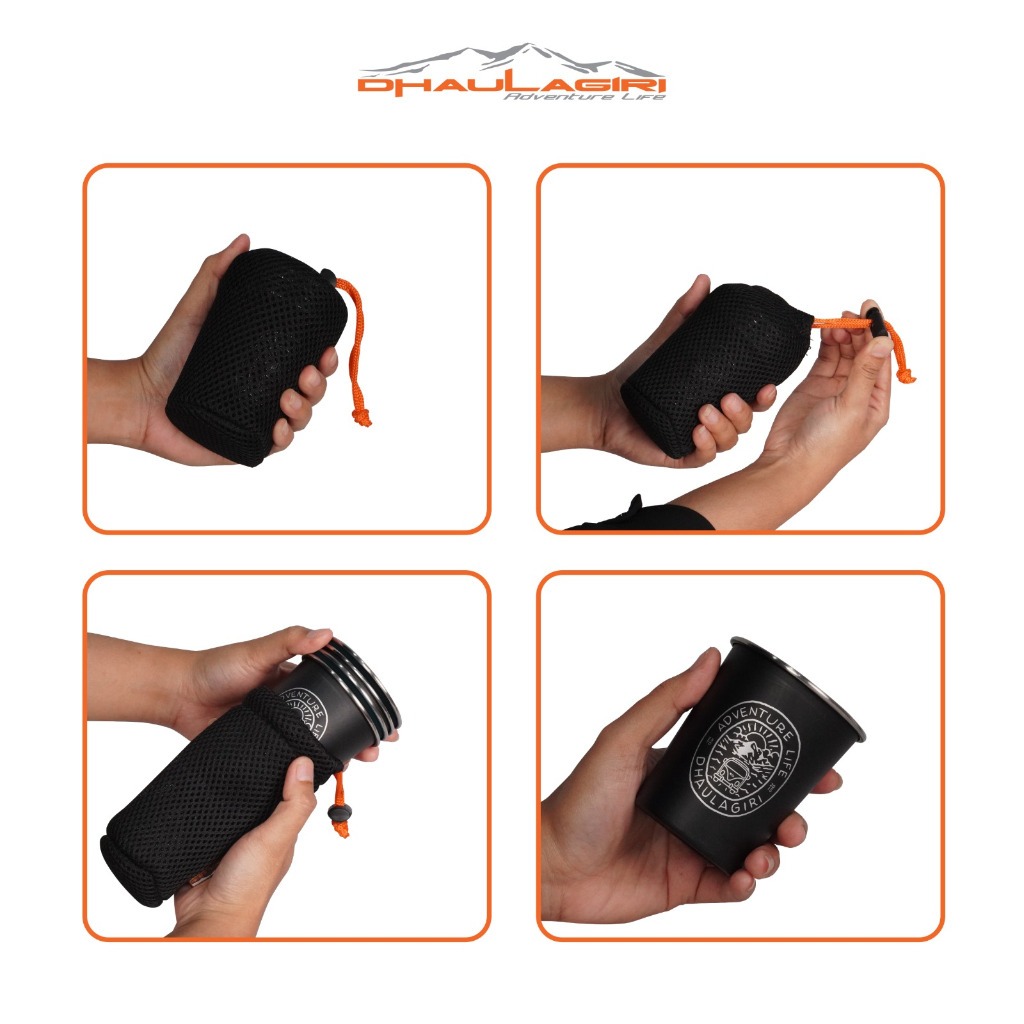 Gelas Camping 4 in 1 Mug Set Dhaulagiri Stainless Steel Portable Camping Outdoor Mug 4 Set Mug Set Ultralight Camping