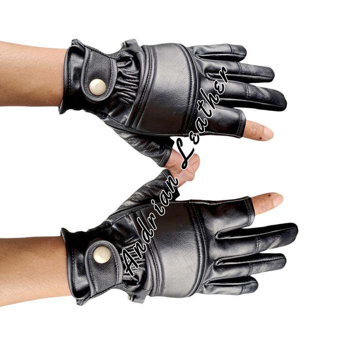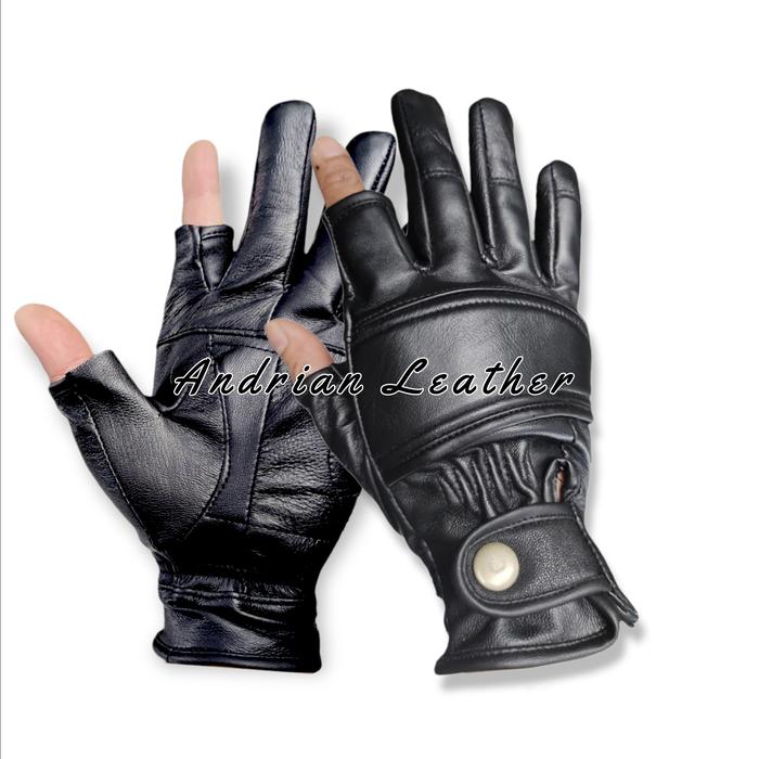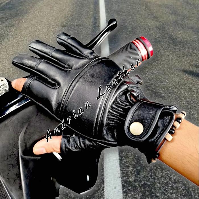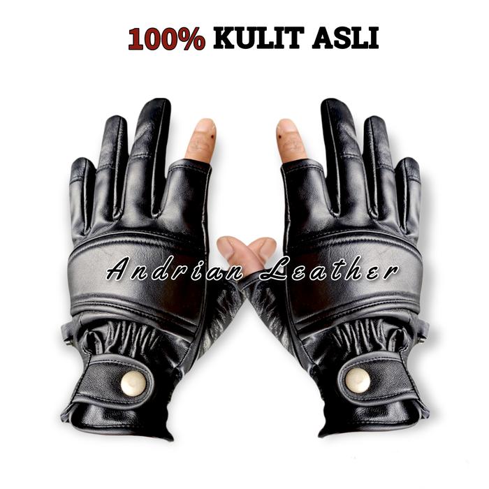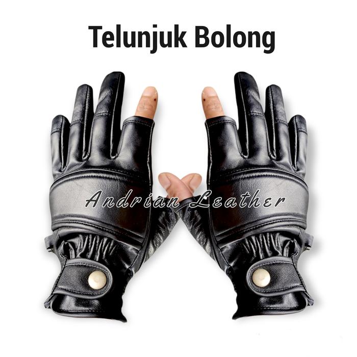 PROMO TERBATAS SARUNG TANGAN MOTOR KULIT DOMBA ASLI JARI BOLONG GLOVES HALF FINGER TELUNJUK BOLONG M