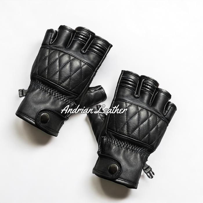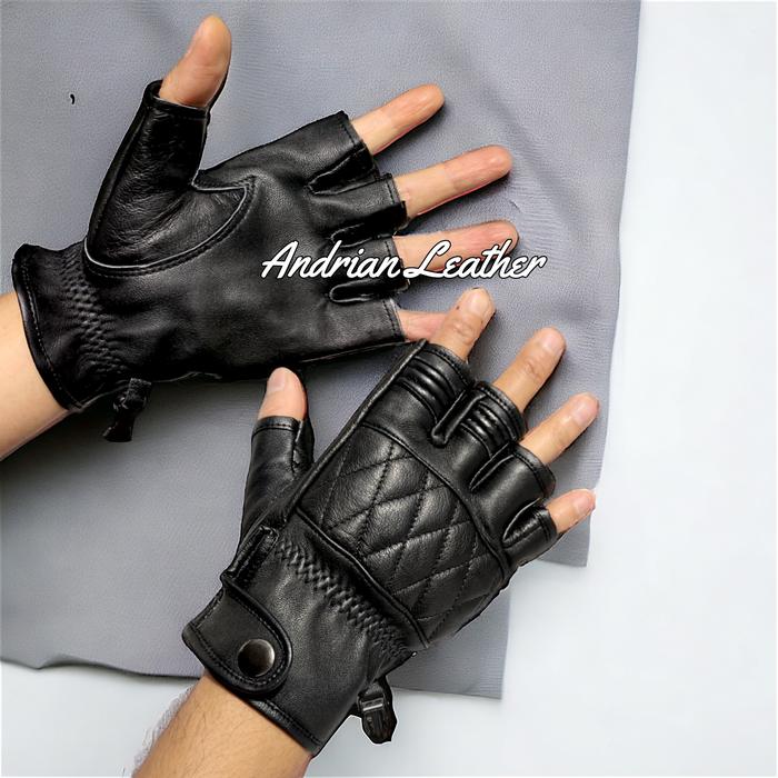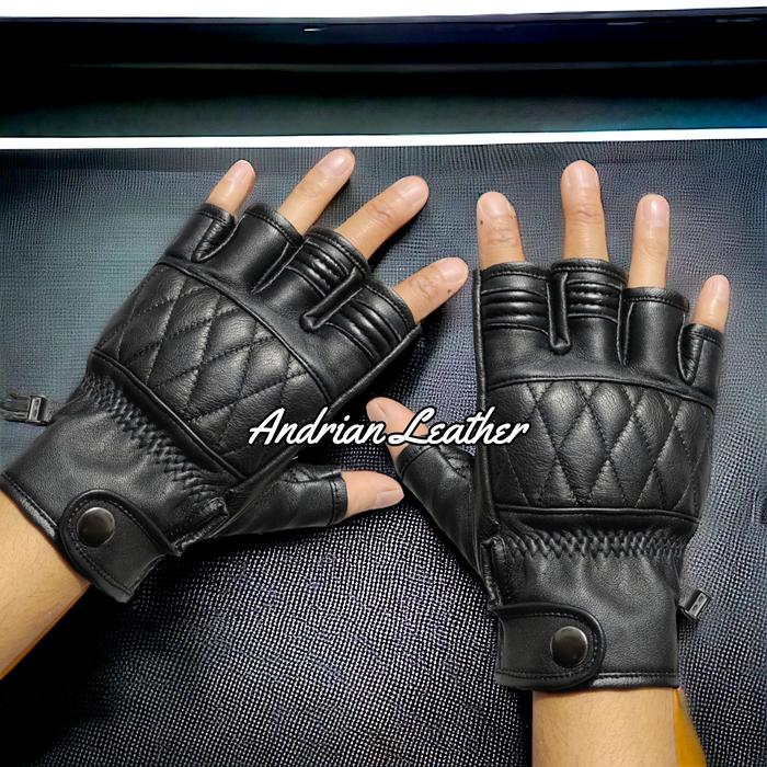 PROMO TERBATAS SARUNG TANGAN MOTOR KULIT ASLI PENDEK SPORTY HITAM M
