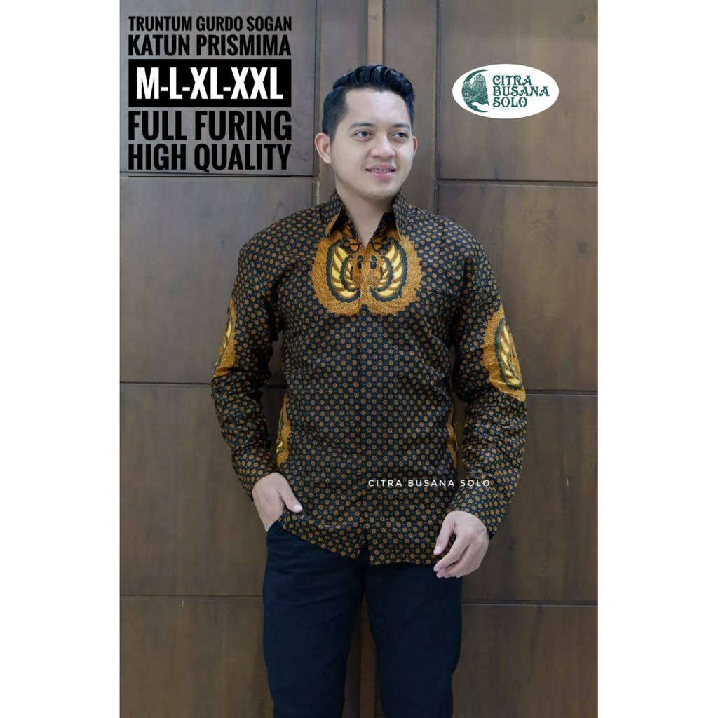 TRUNTUM GURDO SOGAN Kemeja Batik Pria Full Furing Bahan Katun Primisima
