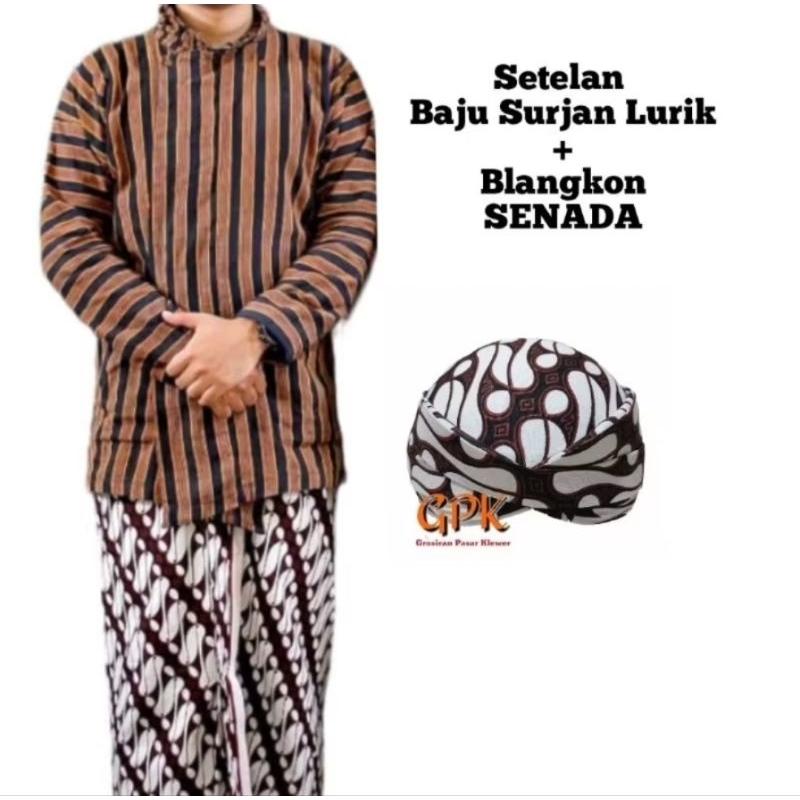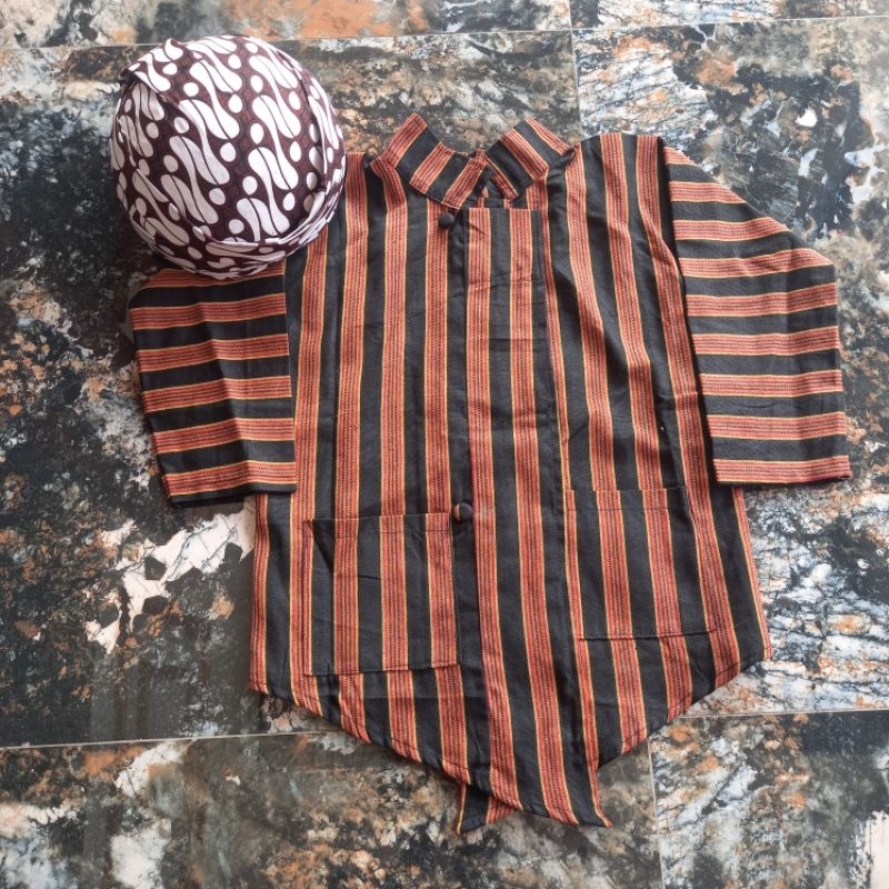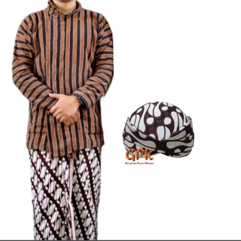 [ 1Set ] Baju Surjan Lurik Dan Blangkon Batik Dewasa