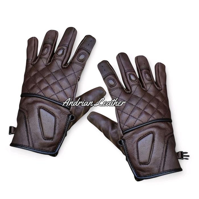 PROMO TERBATAS GLOVES FULL FINGER SARUNG TANGAN MOTOR KULIT ASLI SPORTY COKLAT L